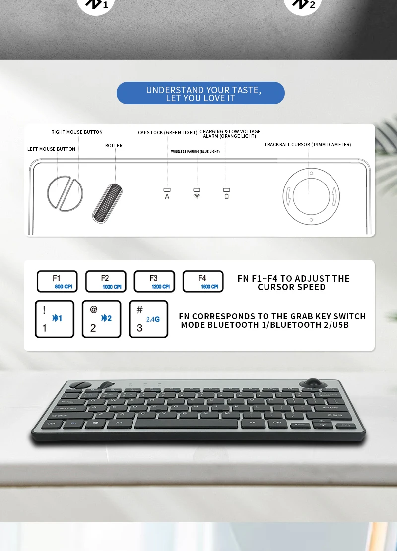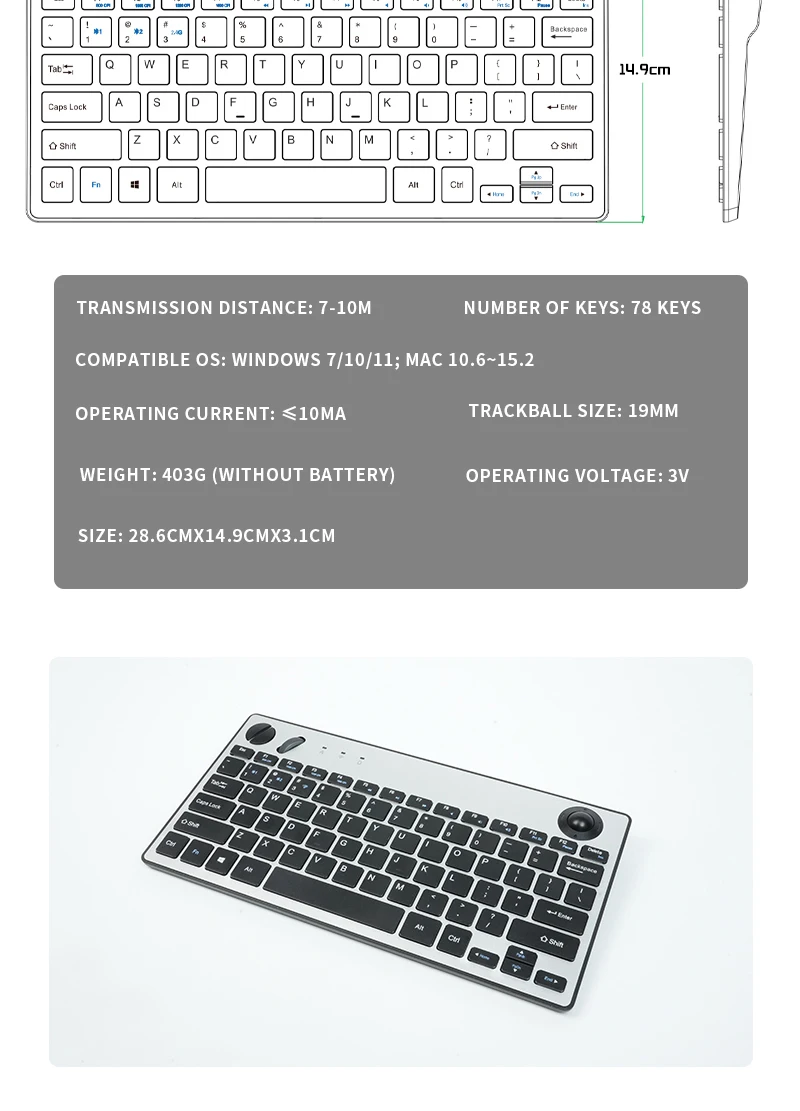 [Tamaño perfecto] -El teclado apropiado cabe muy bien en ambas manos, las teclas son mucho más fáciles de escribir. Hay un botón de clic en cada esquina para su dedo índice como un controlador de juego. Diseñado no solo para PC con centros multimedia sino también para trabajar y jugar.