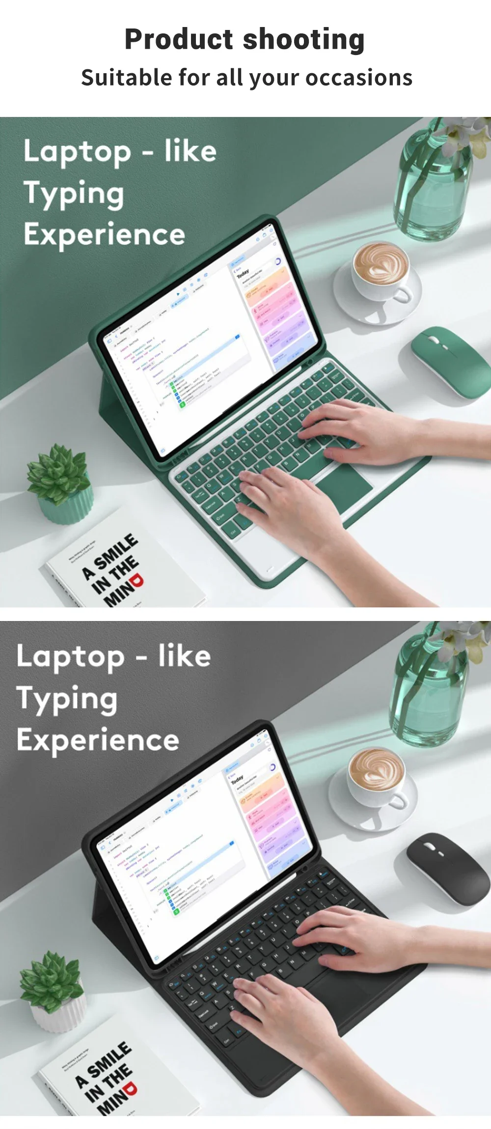 Teclado con un gran trackpad, compatible con Bluetooth inalámbrico, hay muchas opciones de color, el uso del teclado es muy silencioso, no afectará a los demás, puede trabajar al lado del bebé sin ser molestado, El trackpad grande tiene muchas instrucciones con los dedos que pueden cooperar con usted en un trabajo más eficiente, incluyendo cambiar la barra de tareas, volver a la interfaz principal, desplazarse y otros gestos, es muy ligero y casi del tamaño de su tableta, con la funda protectora EM puede ser atraído magnéticamente a la funda protectora, Es muy importante llevarlo a cabo, y no hay necesidad de llevar un ratón, que es muy adecuado para aprender, llevar a cabo la Oficina, dar a familiares y amigos como regalo.