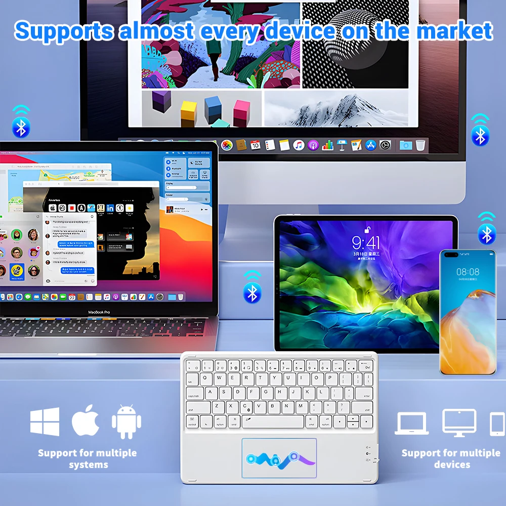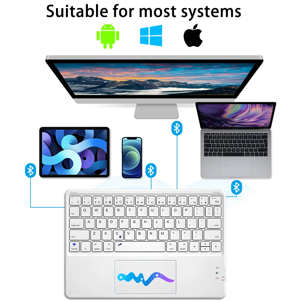 Teclado inalámbrico Bluetooth con panel táctil, teclado de tableta recargable para iPad y otros dispositivos iOS Android Windows