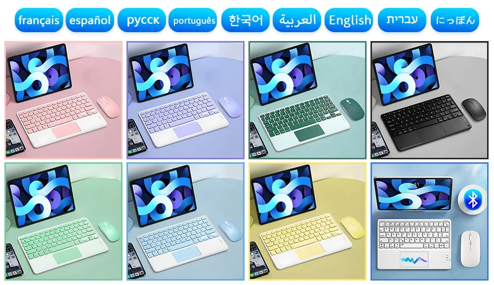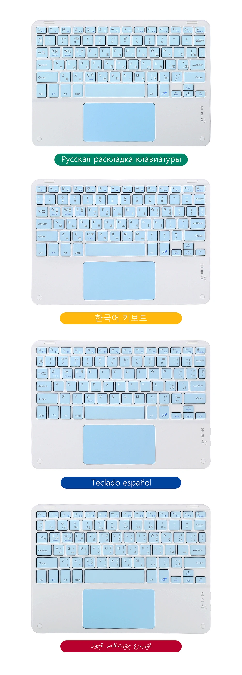 Comprar Teclado inalámbrico kawaii TrackPad para tableta, IOS, Android, Windows, iPad Air 4, Mini Pro, español, árabe, coreano, ruso
