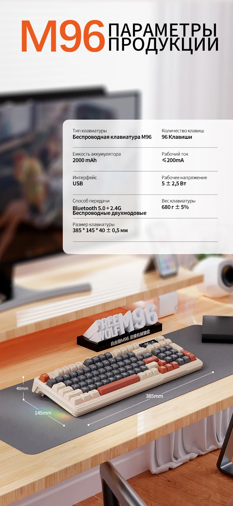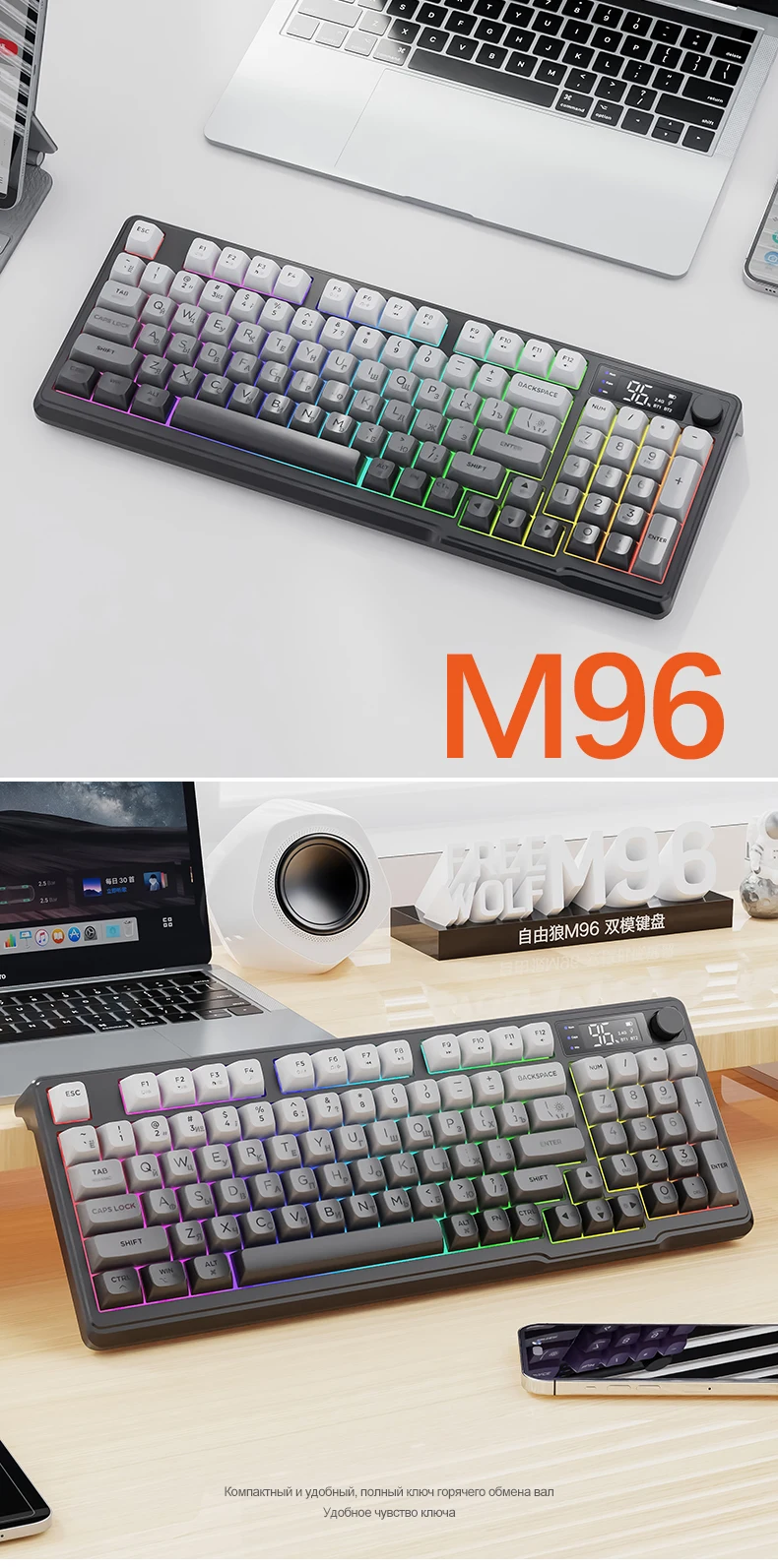 Este teclado inalámbrico M96 con pantalla inteligente es de la marca FreeWolf, que es Ziyoulang (espinción china).