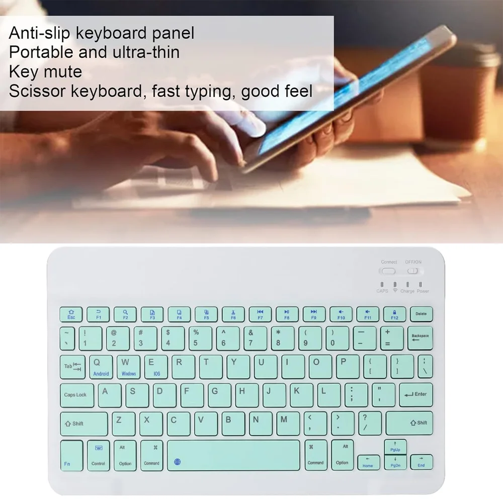 4. Cómodo teclado compatible con Bluetooth: las teclas del teclado tienen una estructura de tijera, diseño ergonómico de tecla cuadrado de chocolate.Utilice este teclado para escribir silenciosamente en su tableta, iPad, iPhone, teléfono inteligente y brindarle una experiencia de escritura cómoda y placentera.