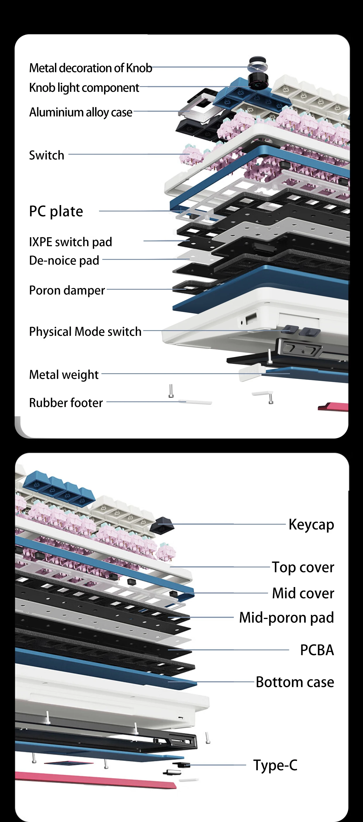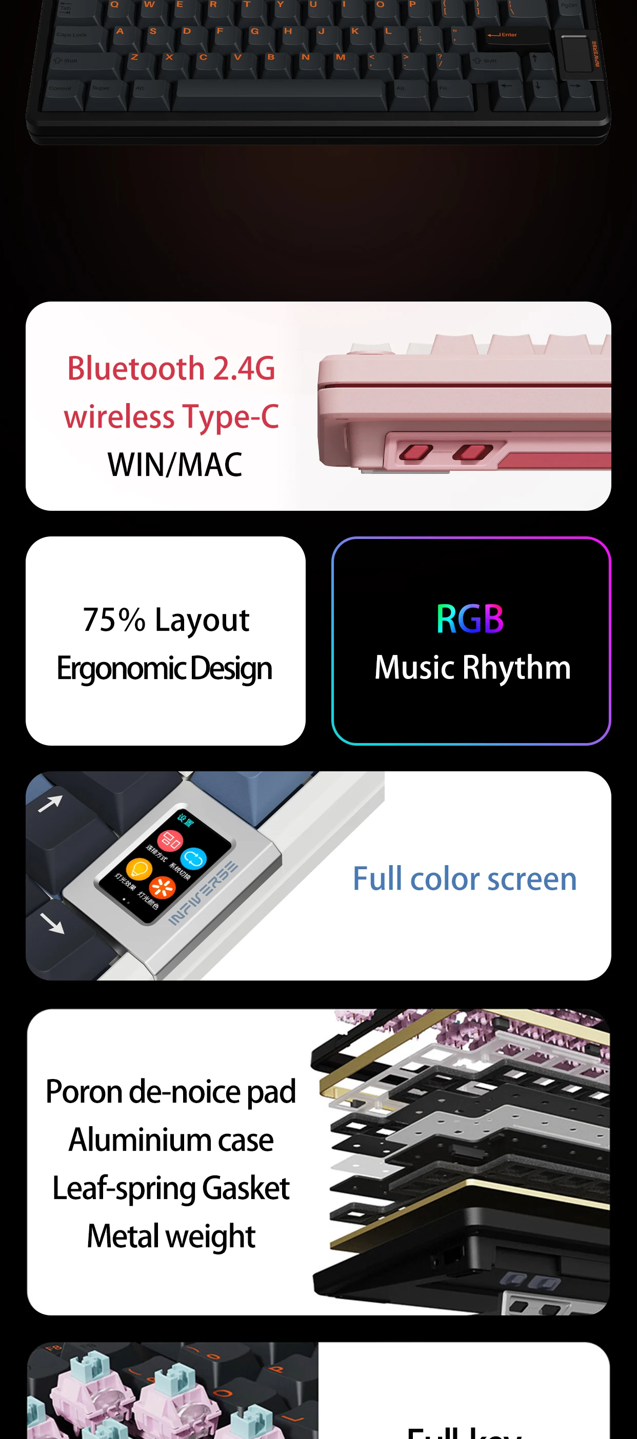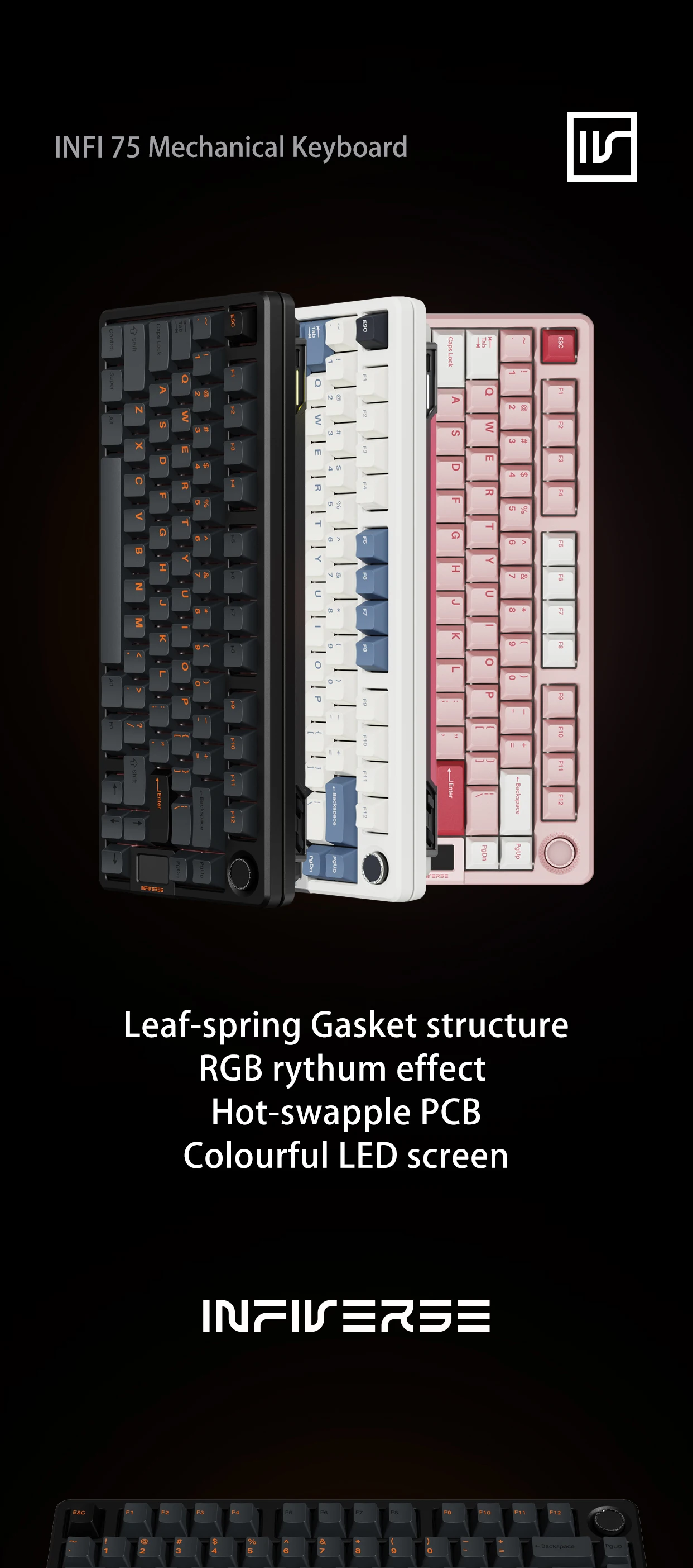 Comprar Teclado Infiverse INFI75 75%, montaje de junta, PCB intercambiable en caliente, Bluetooth, 2,4 Ghz, tipo C, RGB, mecánico para juegos, WIN MAC