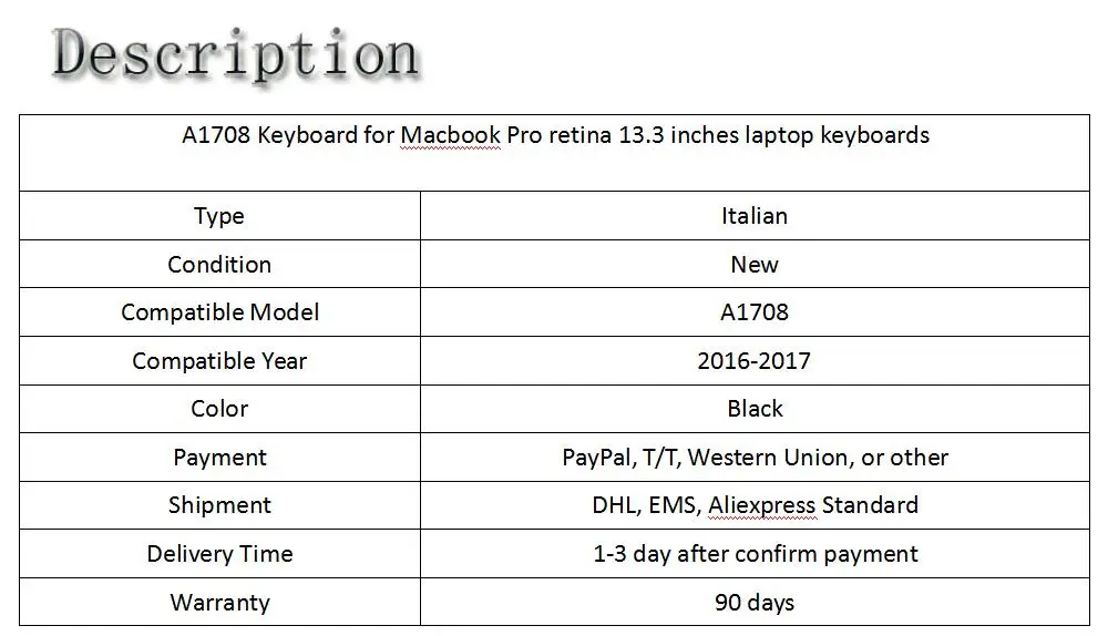 Teclado italiano A1708 con retroiluminación para ordenador portátil, accesorio para Macbook pro retina de 13,3 pulgadas, con retroiluminación 2016 2017 MLL42 MPXQ2