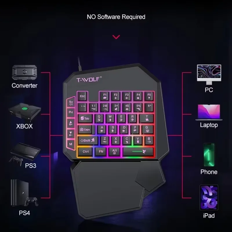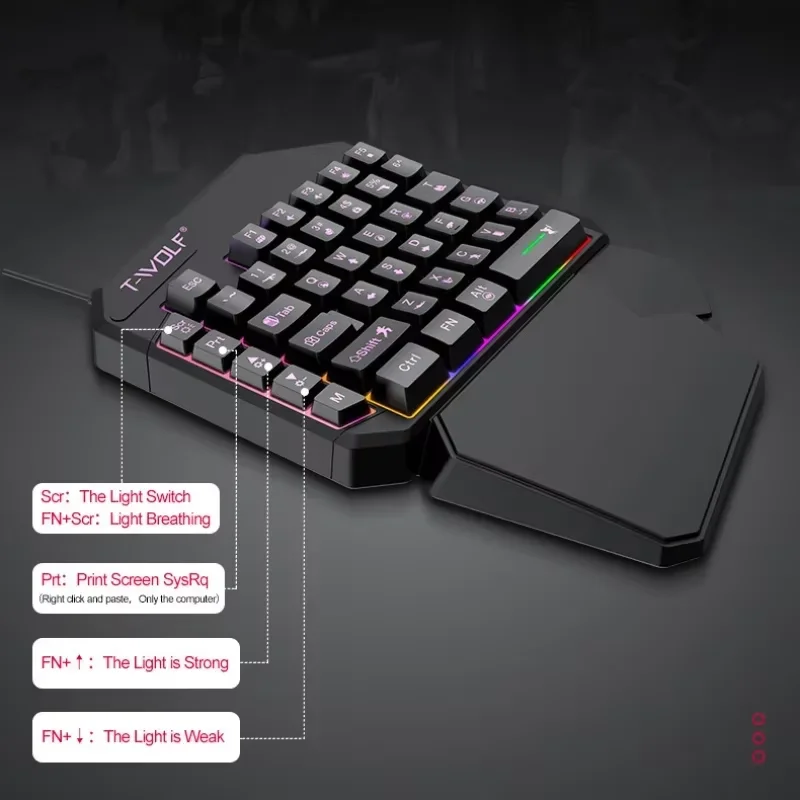 1.Teclado con una sola mano: se adapta perfectamente a los hábitos operativos del jugador, este teclado para juegos te ayudará a superar tus competidores en el juego más rápido.