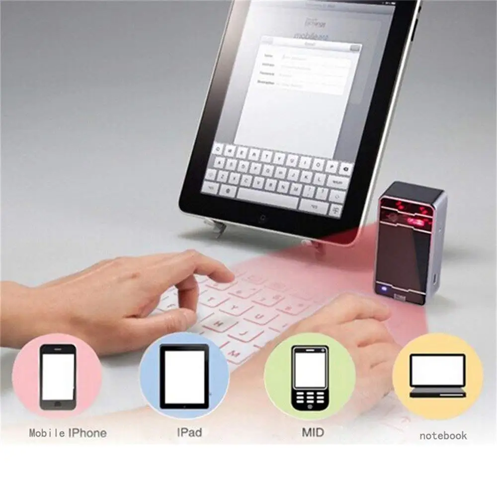 Comprar Teclado láser inalámbrico con Bluetooth, teclado de proyección Virtual portátil para Iphone, Android, teléfono inteligente, Ipad, tableta, PC, Notebook