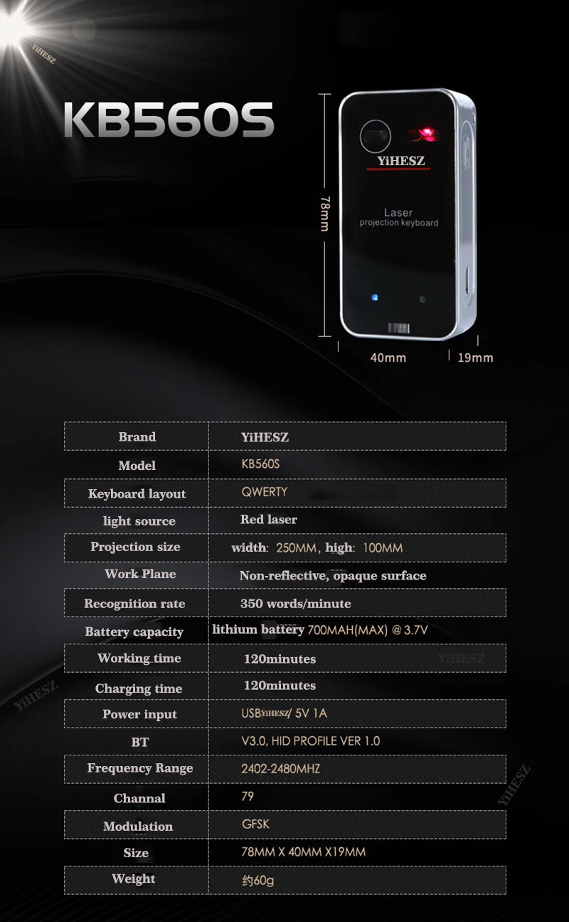 KB560 Teclado láser virtual portátil Teclado Bluetooth Teclado virtual con función de ratón para tableta Teclado de computadora