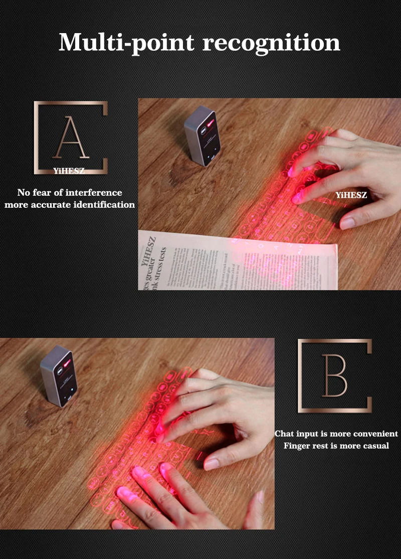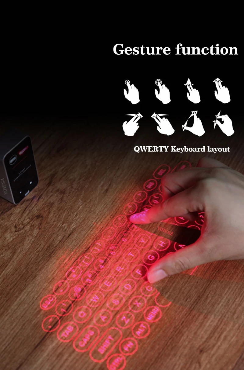 Como nuevo dispositivo de entrada, usando el transmisor láser infrarrojo incorporado para proyectar el teclado estándar en la superficie de trabajo, puede localizar la posición de clic e introducir la información por el método de identificación óptica