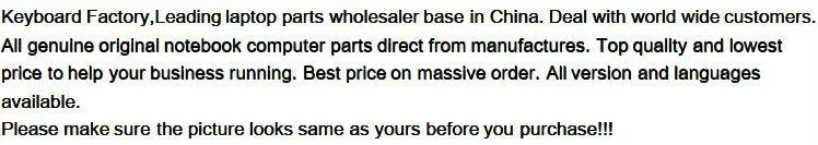 Porque en diferentes países el mismo tipo de teclado puede tener diferencias.Por lo tanto, compruebe cuidadosamente las piezas viejas de su computadora portátil con nuestros productos.Si no está seguro de si nuestro producto se ajusta a su computadora portátil, envíenos fotografías de su computadora portátil.Entonces podemos ayudarte a hacer una dicisión.