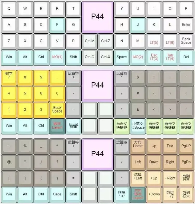 P44 Inline Keyboard Custom 44keys 1U RGB Orthogonal Wired Mechanical Keyboard QMK VIA Aluminium Office Gaming Simple Keyboard