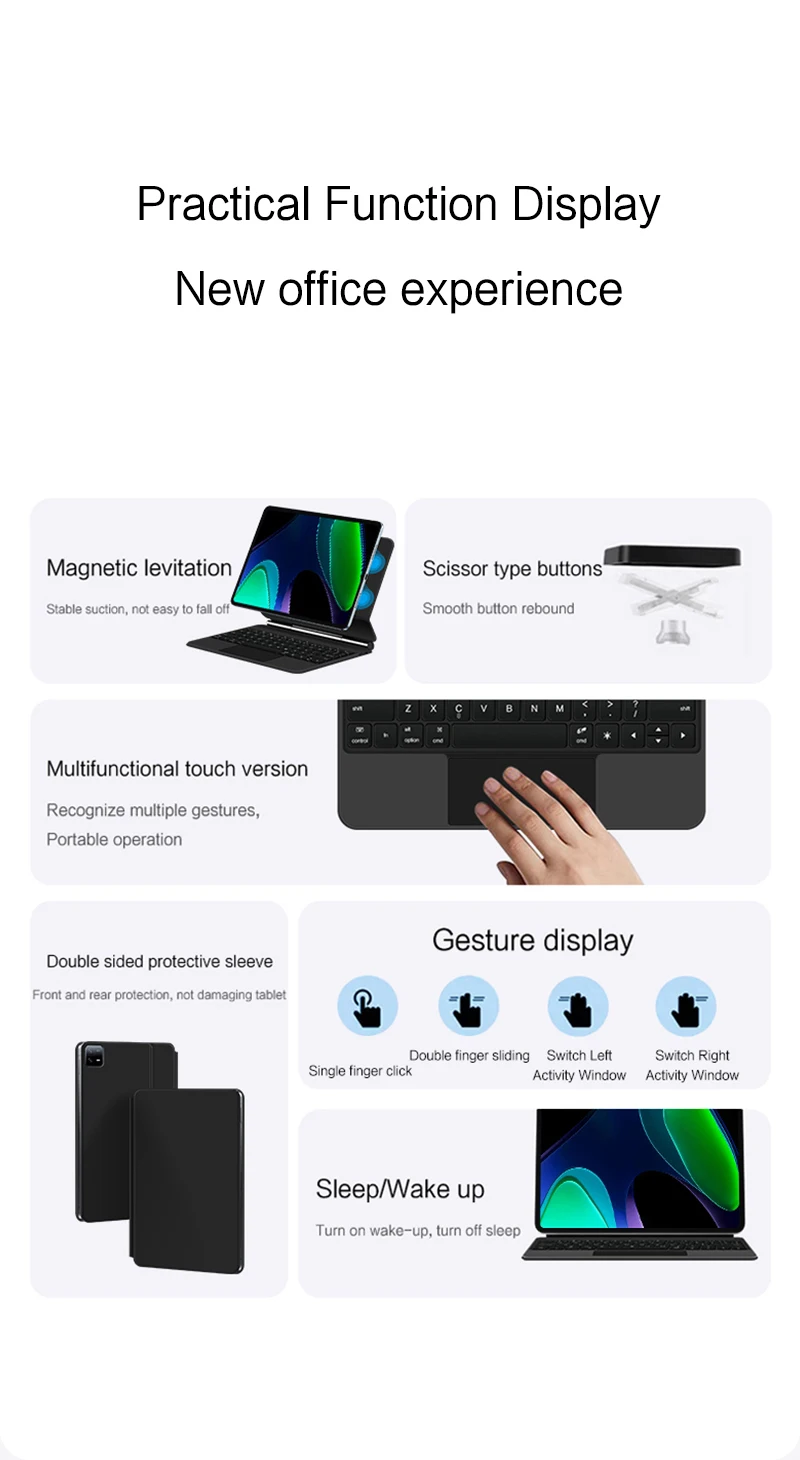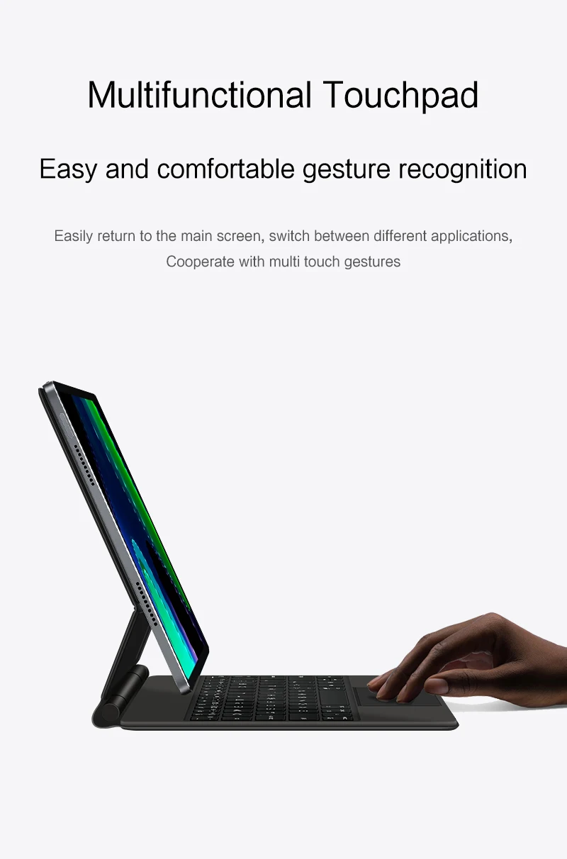 Separación magnética, retroiluminación, panel táctil, soporte multiángulo, conexión inalámbrica Bluetooth