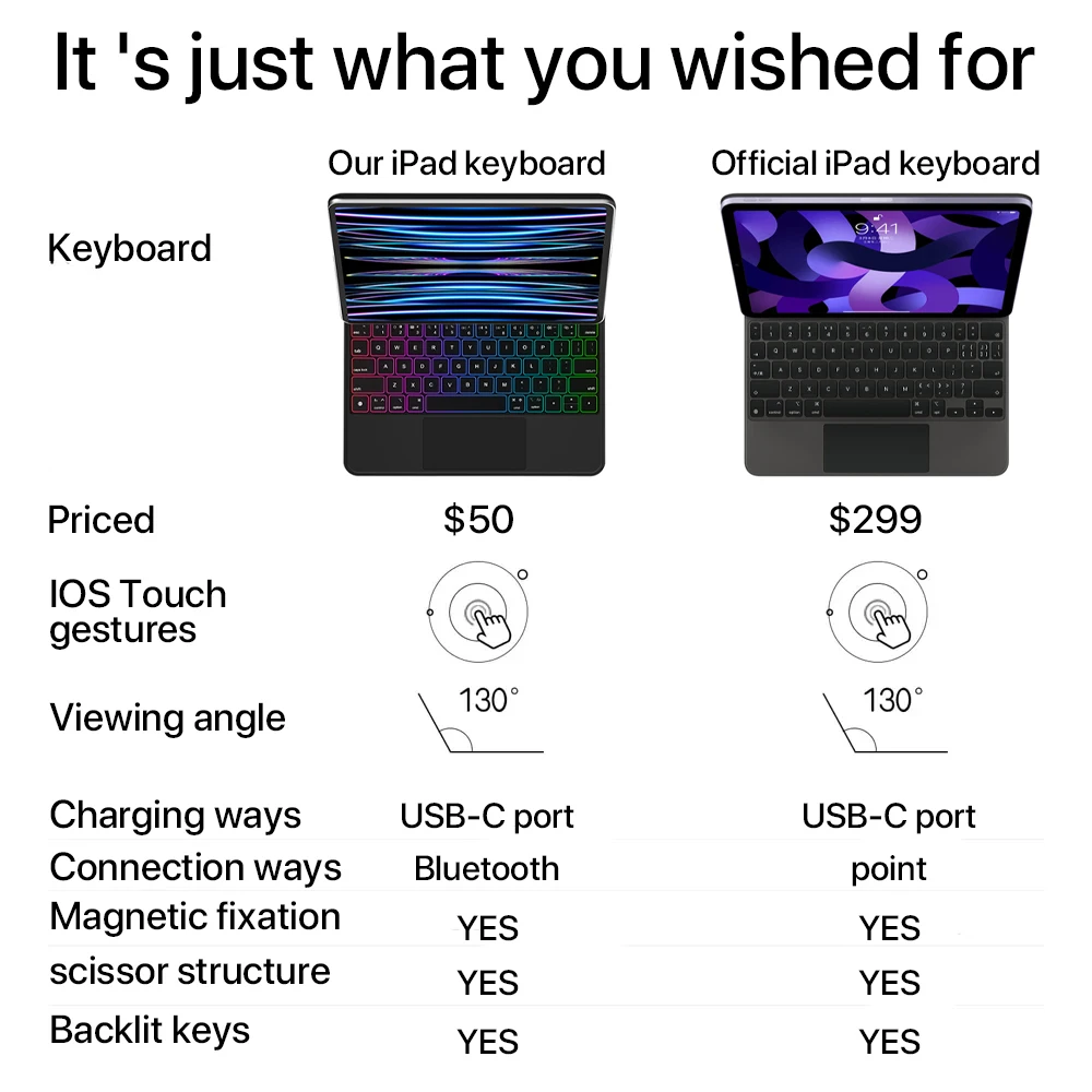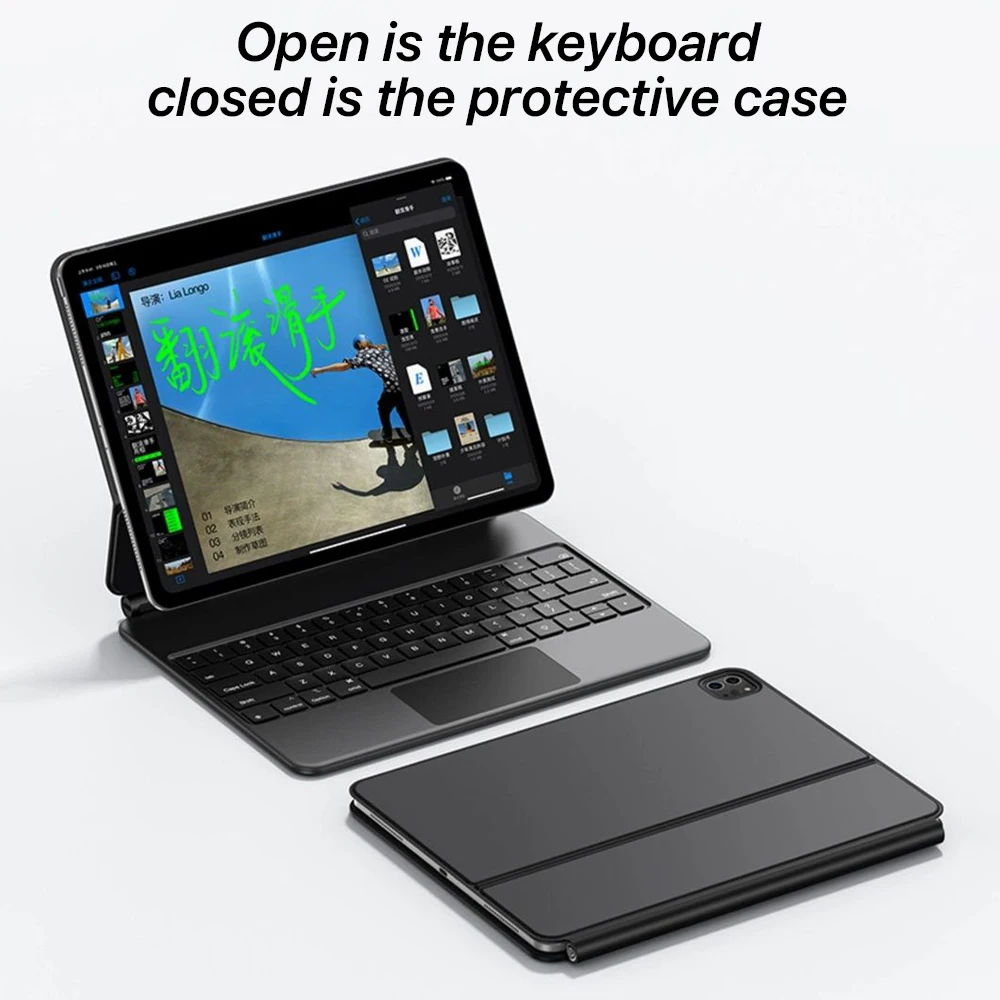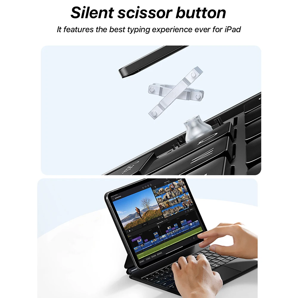 El diseño flotante en voladizo le permite ajustar suavemente el teclado de la funda del iPad al ángulo de visión perfecto
