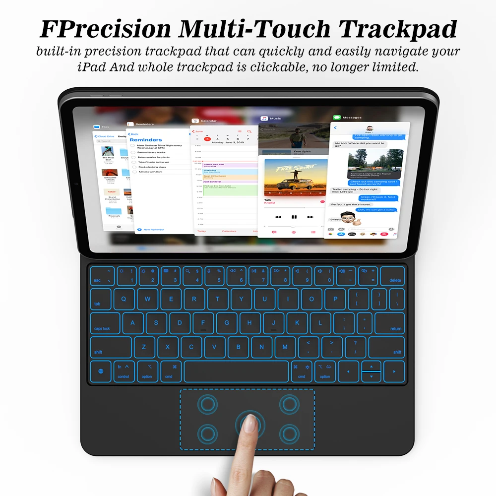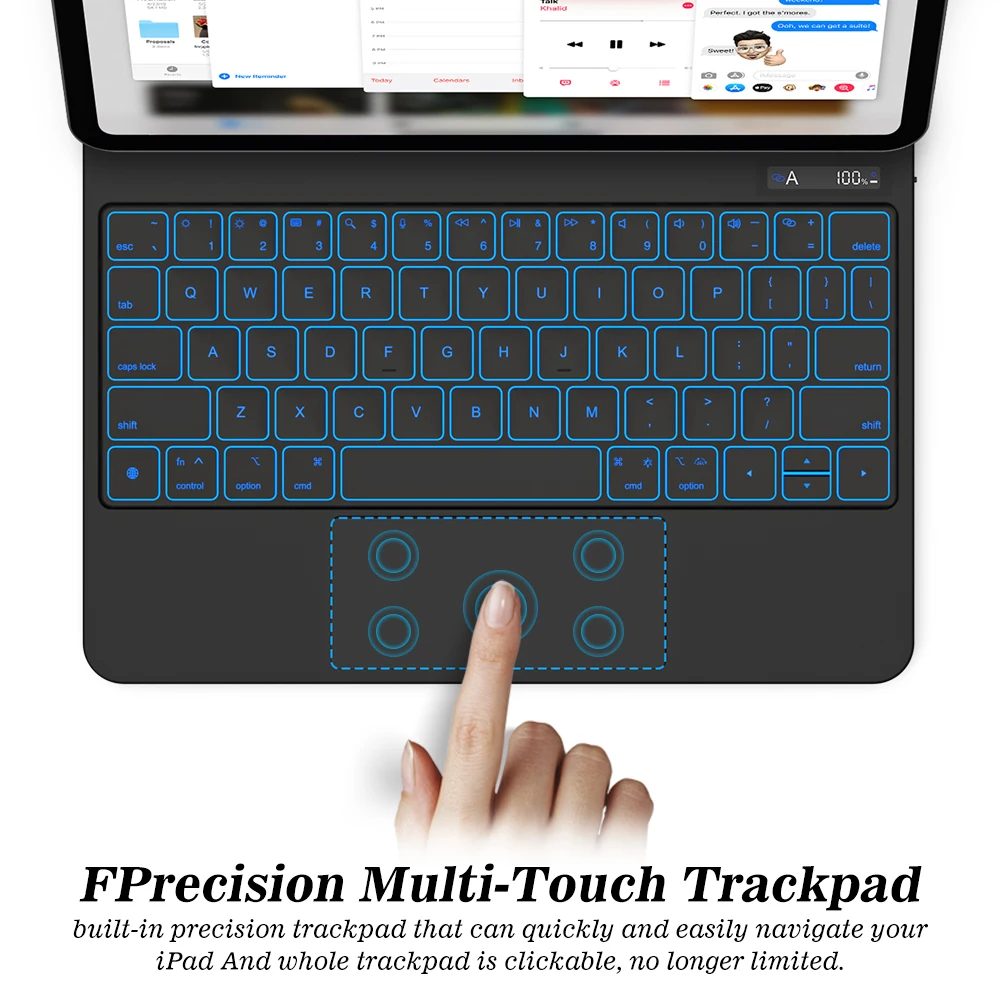 Trackpad de precisión incorporado que puede navegar rápida y fácilmente por su iPad. Se puede hacer clic en todo el trackpad, ya no está limitado.