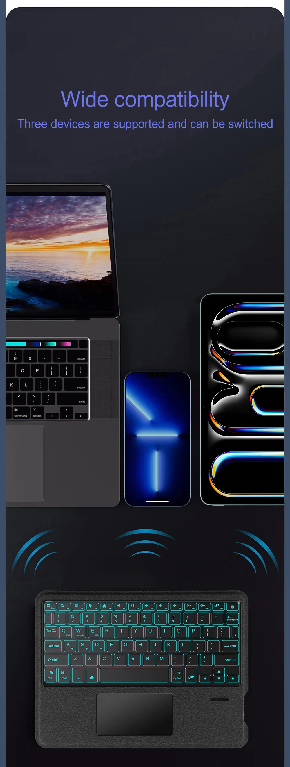 3.Puede soportar la separación de iPad y teclado.Es magnético