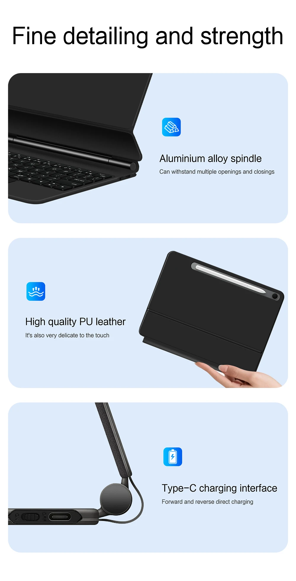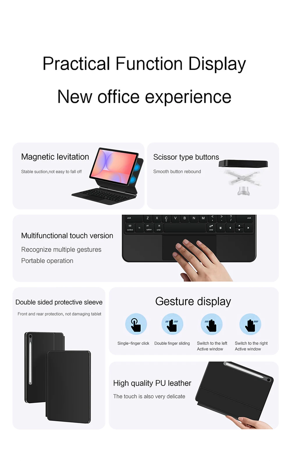 Nota: Debido al gran tamaño de la tableta, si el ángulo del teclado se ajusta demasiado durante el uso, el teclado puede inclinarse.Esta es una situación normal, no entre en pánico, simplemente ajuste la amplitud del teclado y no afectará el uso.