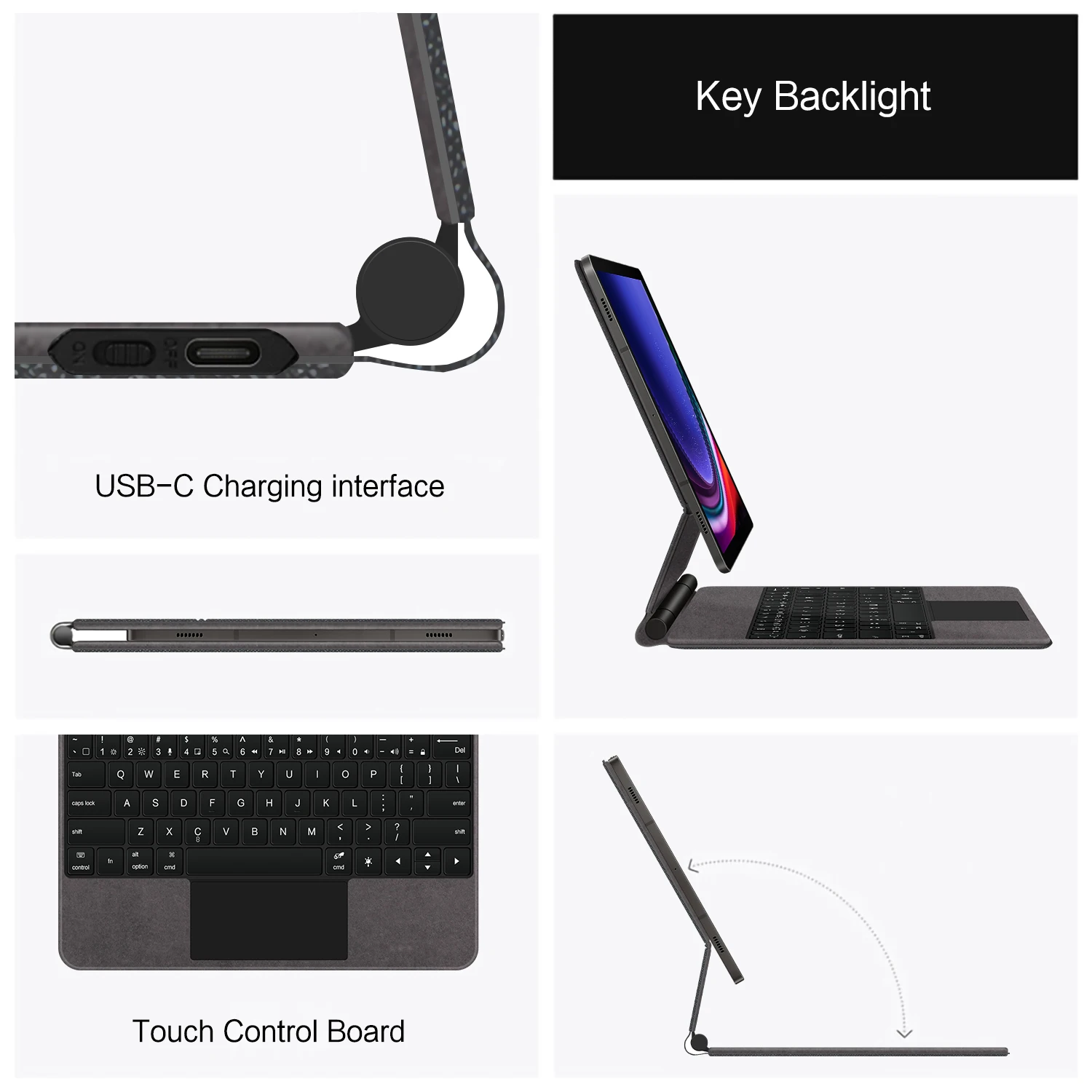 Comprar Teclado mágico para Samsung Galaxy Tab S7 S8 S9 FE Plus 12,4 "para Tab S7 + S8 + S9 + 12,4" funda con teclado con diseño flotante inteligente