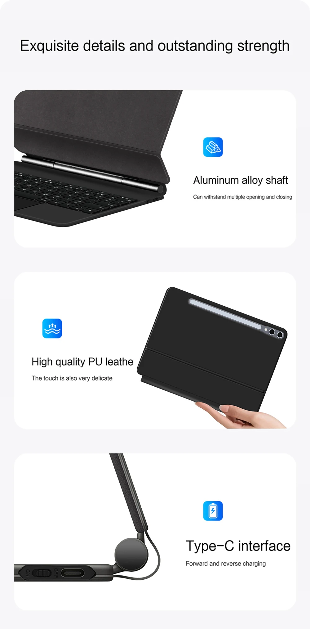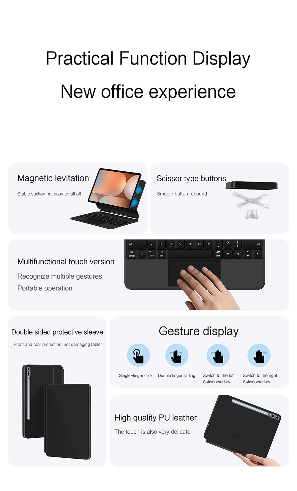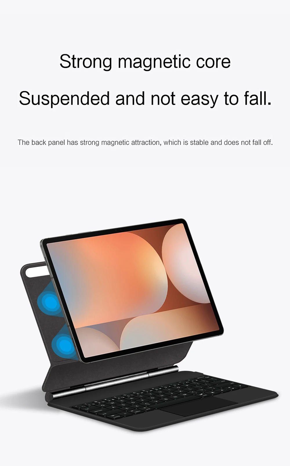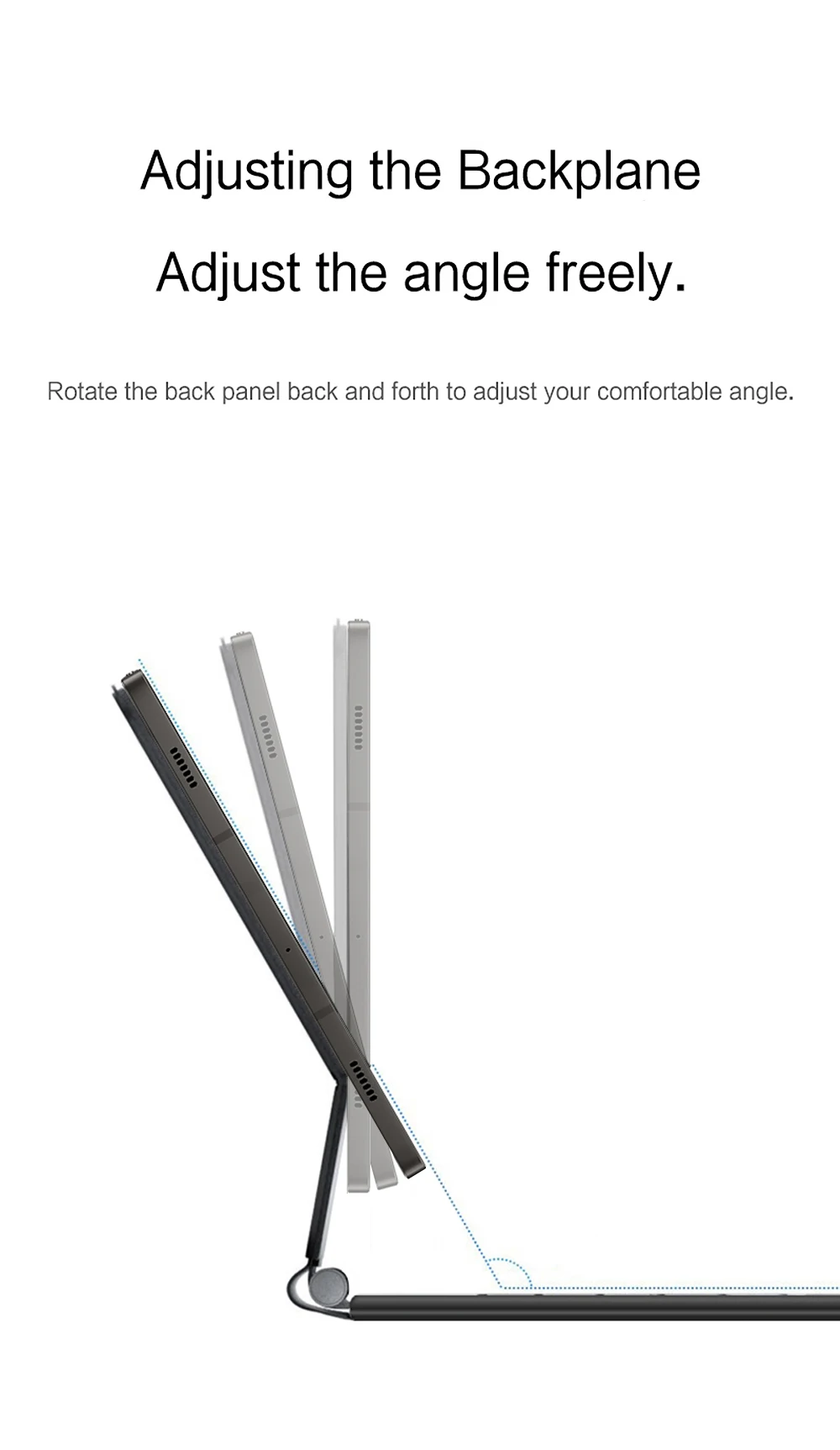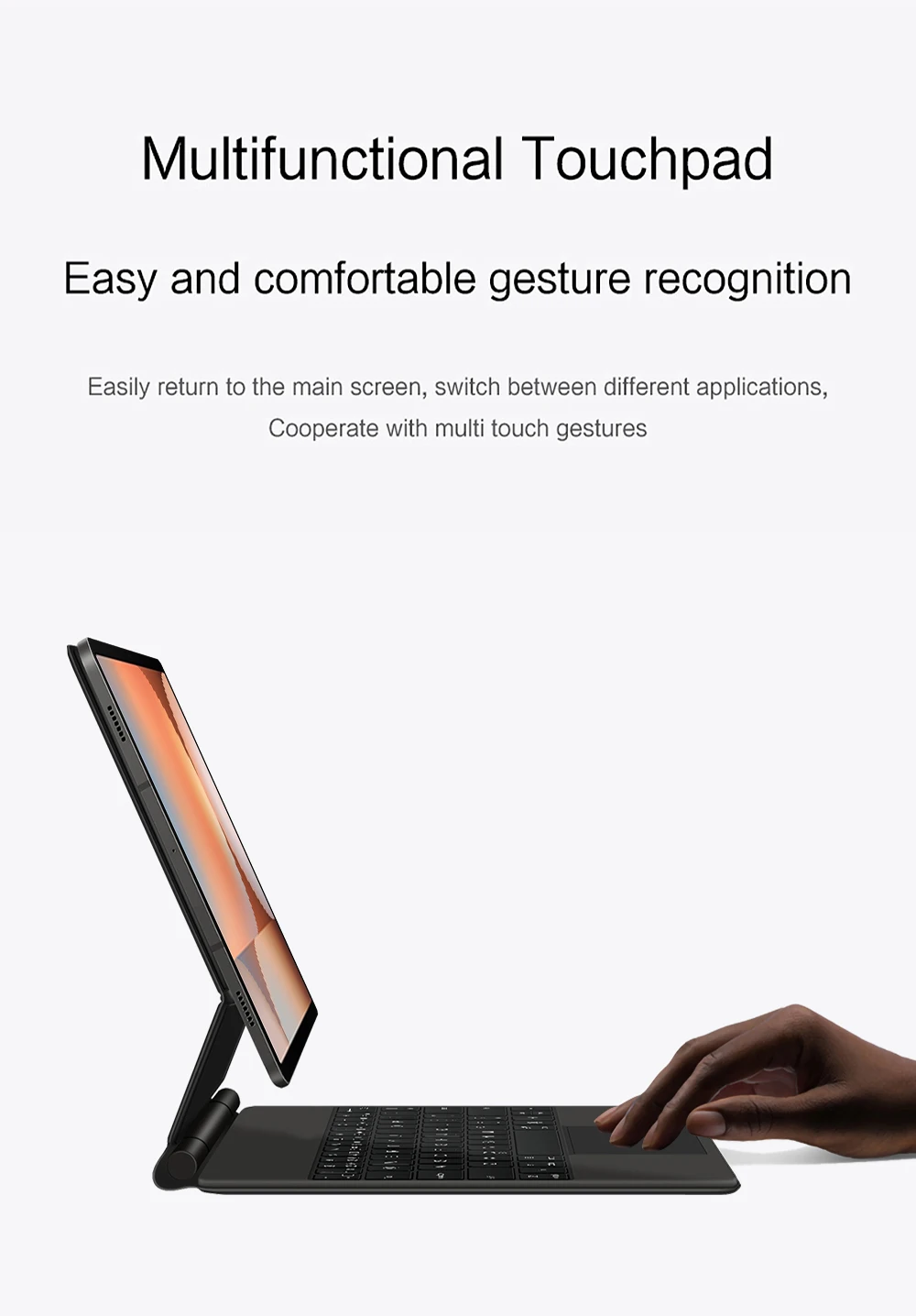 Nota: Debido al gran tamaño de la tableta, si el ángulo del teclado se ajusta demasiado durante el uso, el teclado puede inclinarse.Esta es una situación normal, no entre en pánico, simplemente ajuste la amplitud del teclado y no afectará el uso.
