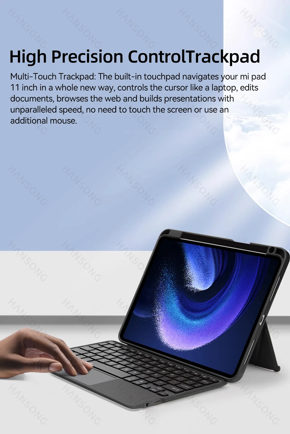Trackpad multitáctil: el panel táctil incorporado navega por su mi pad de 11 pulgadas de una manera completamente nueva, controla el cursor como un ordenador portátil, edita documentos, navega por la web y crea presentaciones con una velocidad incomparable, sin necesidad de tocar la pantalla o usar un mouse adicional.