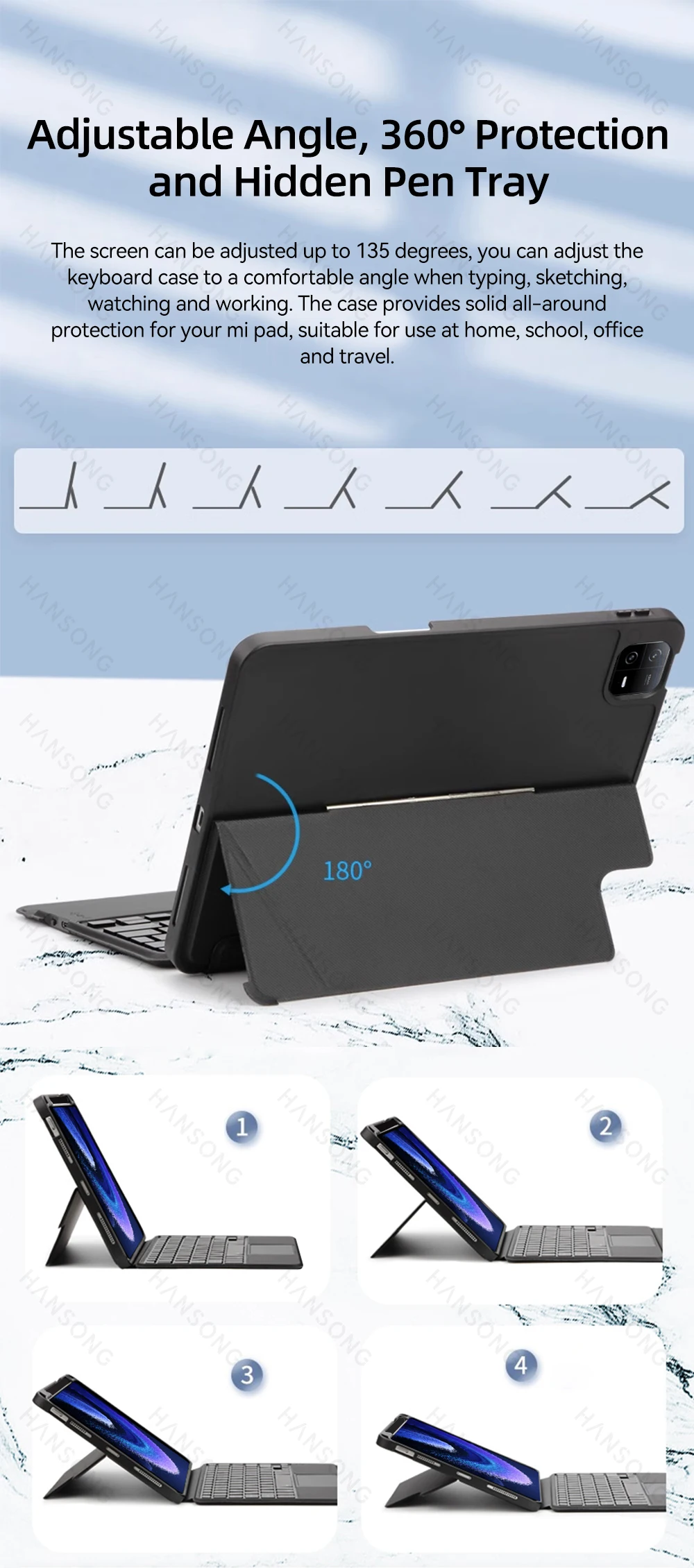 La pantalla se puede ajustar hasta 135 grados, puede ajustar la carcasa del teclado a un ángulo cómodo al escribir, dibujar, ver y trabajar. La funda proporciona una protección sólida y completa para su mi PAD, adecuada para su uso en el hogar, la escuela, la Oficina y los viajes.