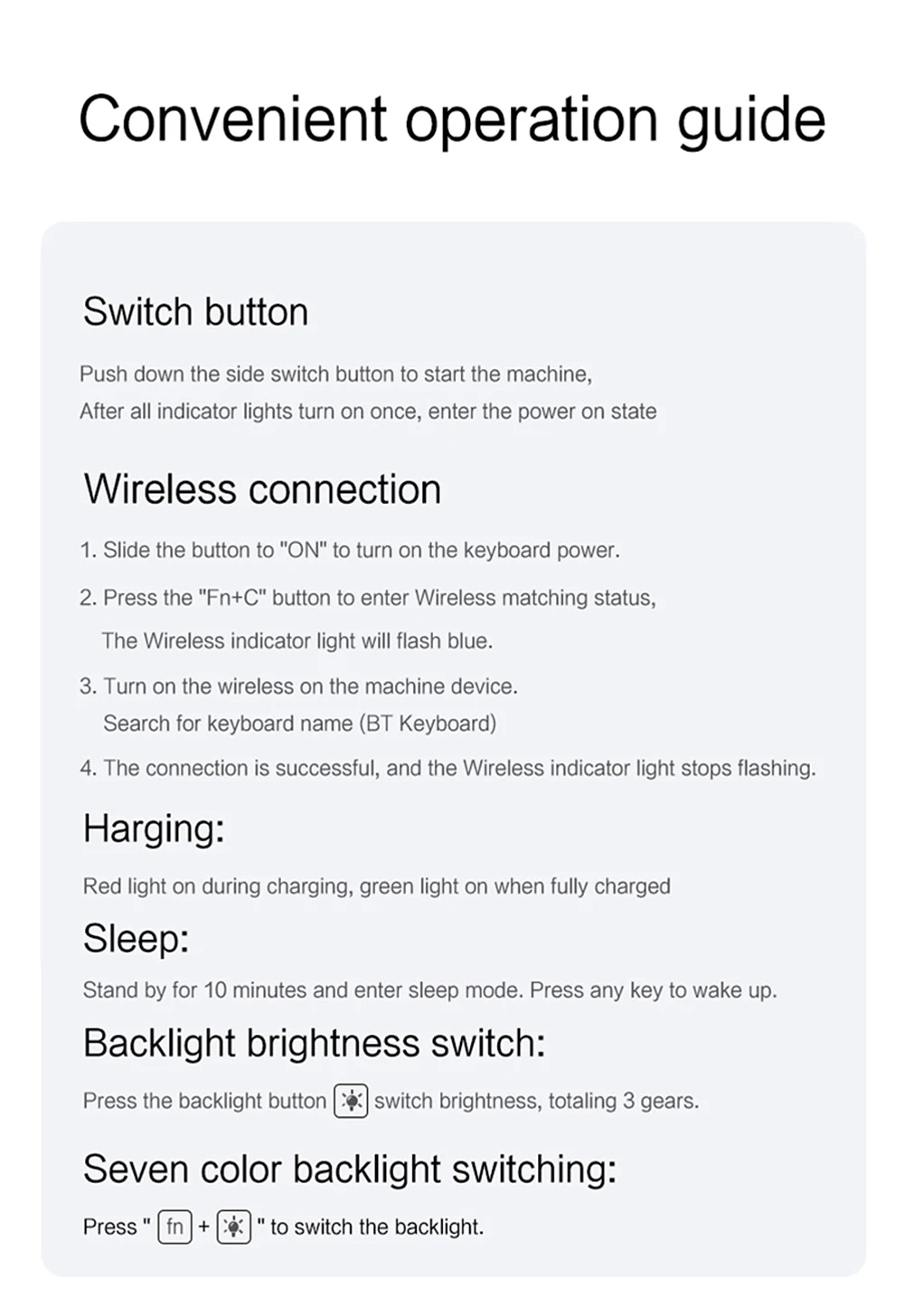 Nota 3:Después de abrir la alimentación, haga clic en "Fn" y "C" 【Fn+C】Botón juntos para abrir el Bluetooth del teclado.Es muy importante.