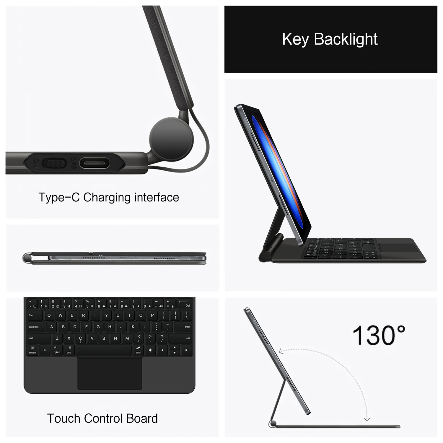 Comprar Teclado mágico para Xiaomi Pad 6S Pro 12,4 "2024 MiPad Mi Pad 6S Pro 12,4 pulgadas funda inteligente magnética teclado táctil retroiluminado