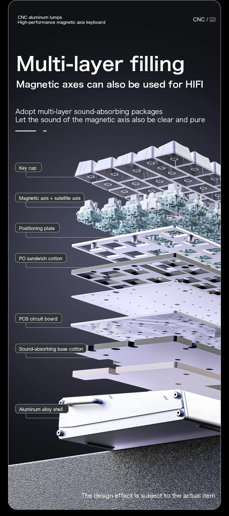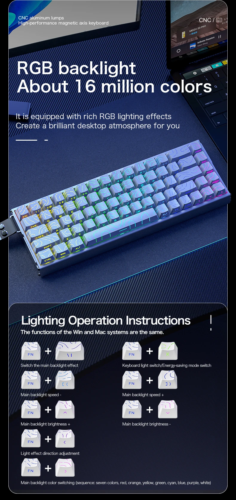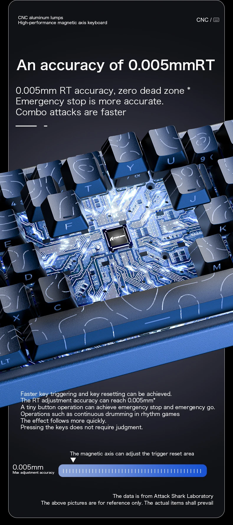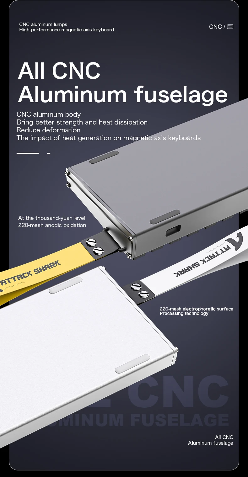 Teclado de eje magnético ATTACK SHARK X68Max| Cuerpo de aluminio CNC| Precisión de 0,005 mm| Velocidad de contaminación de 8000 Hz| Muestreo 256K| Teclas PBT de doble disparo| Controlador web ajustable