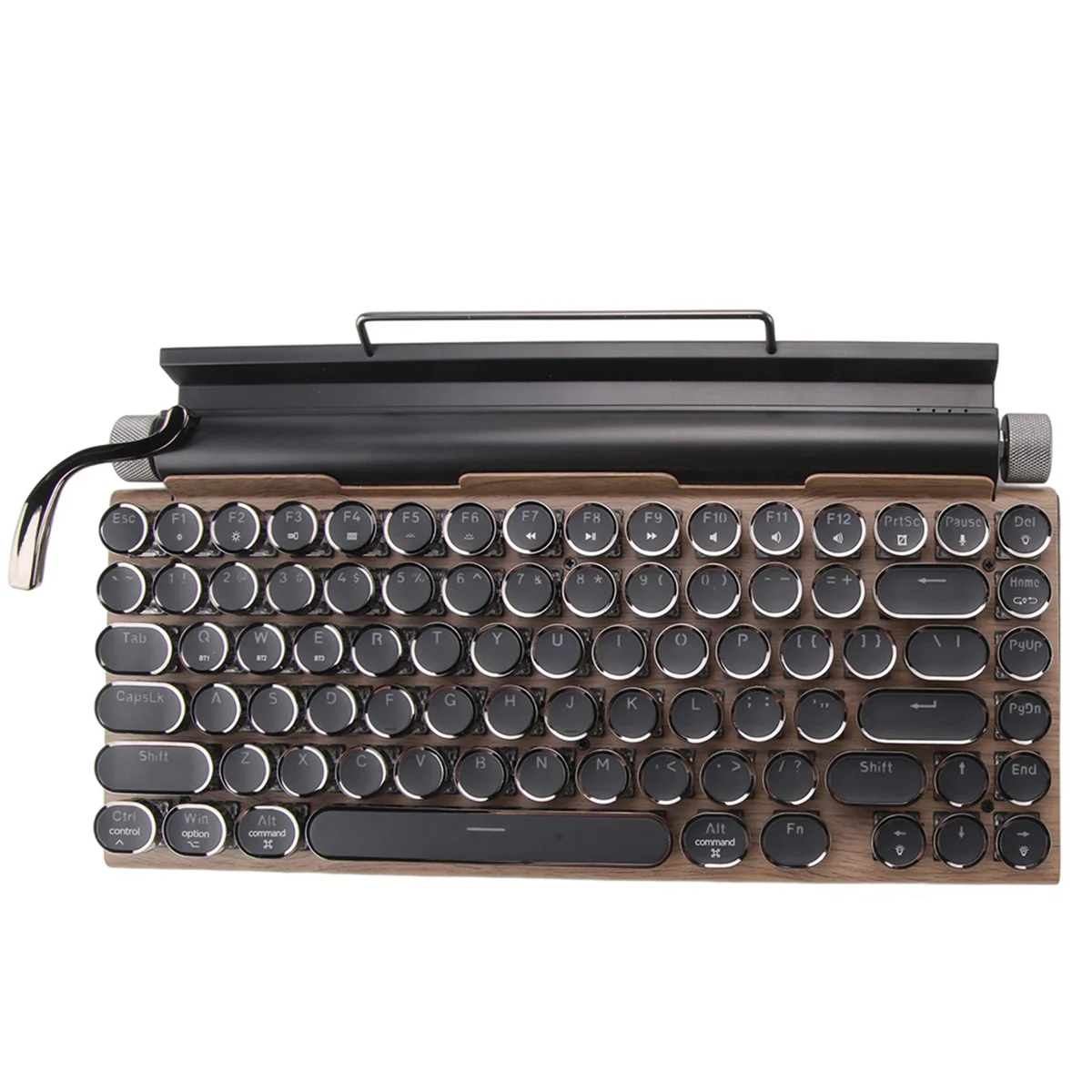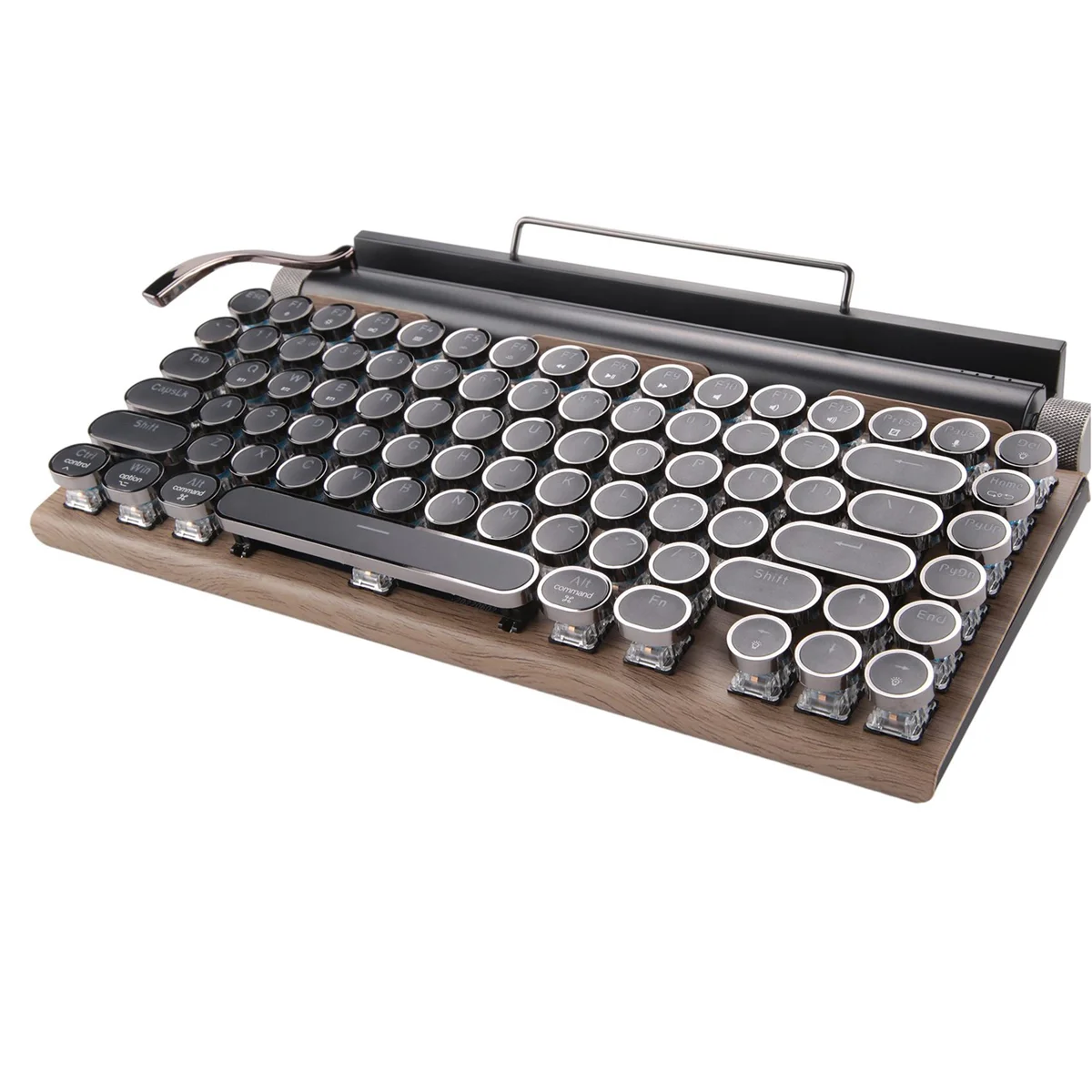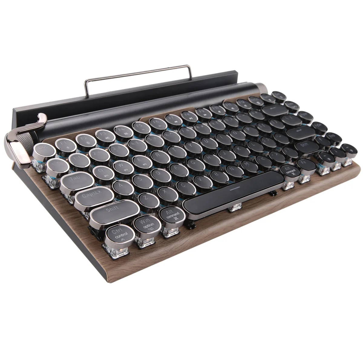 Comprar Teclado de máquina de escribir Retro, teclado inalámbrico Bluetooth, teclas Punk mecánicas USB para PC de escritorio/portátil/teléfono-Color madera