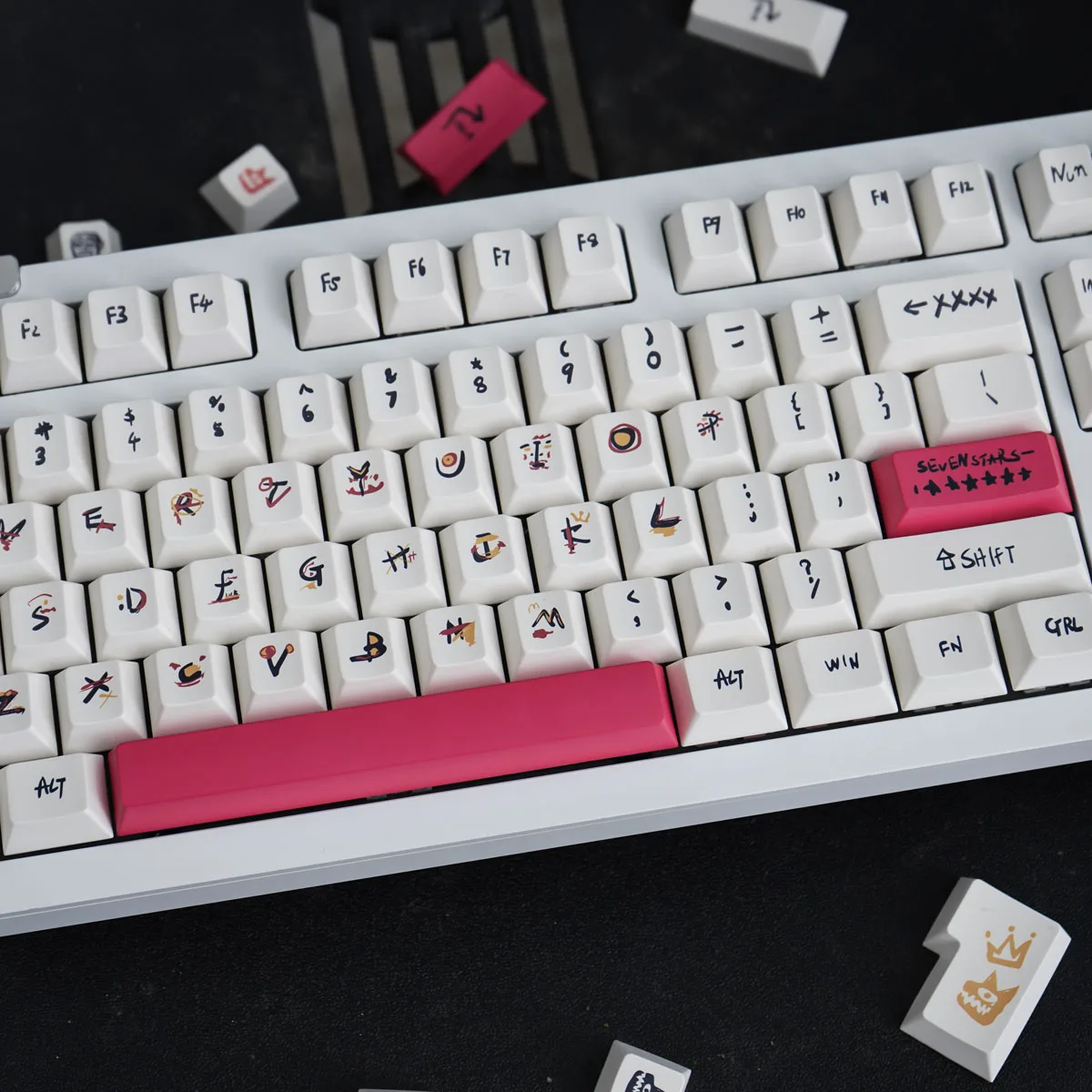 Recuento de teclas: 146 teclasAltura: altura de cerezoMaterial: PBTProceso: sublimación térmica de cinco ladosTranslucidez: NoEmbalaje: con caja/sin cajaAdaptado a 61/64/68/75/84/87/96/980/100/104/108, etc.Al comprar, puede consultar el Servicio de Atención al Cliente para comprender la compatibilidad1. El tamaño del producto se mide manualmente, lo que puede tener algunos errores;