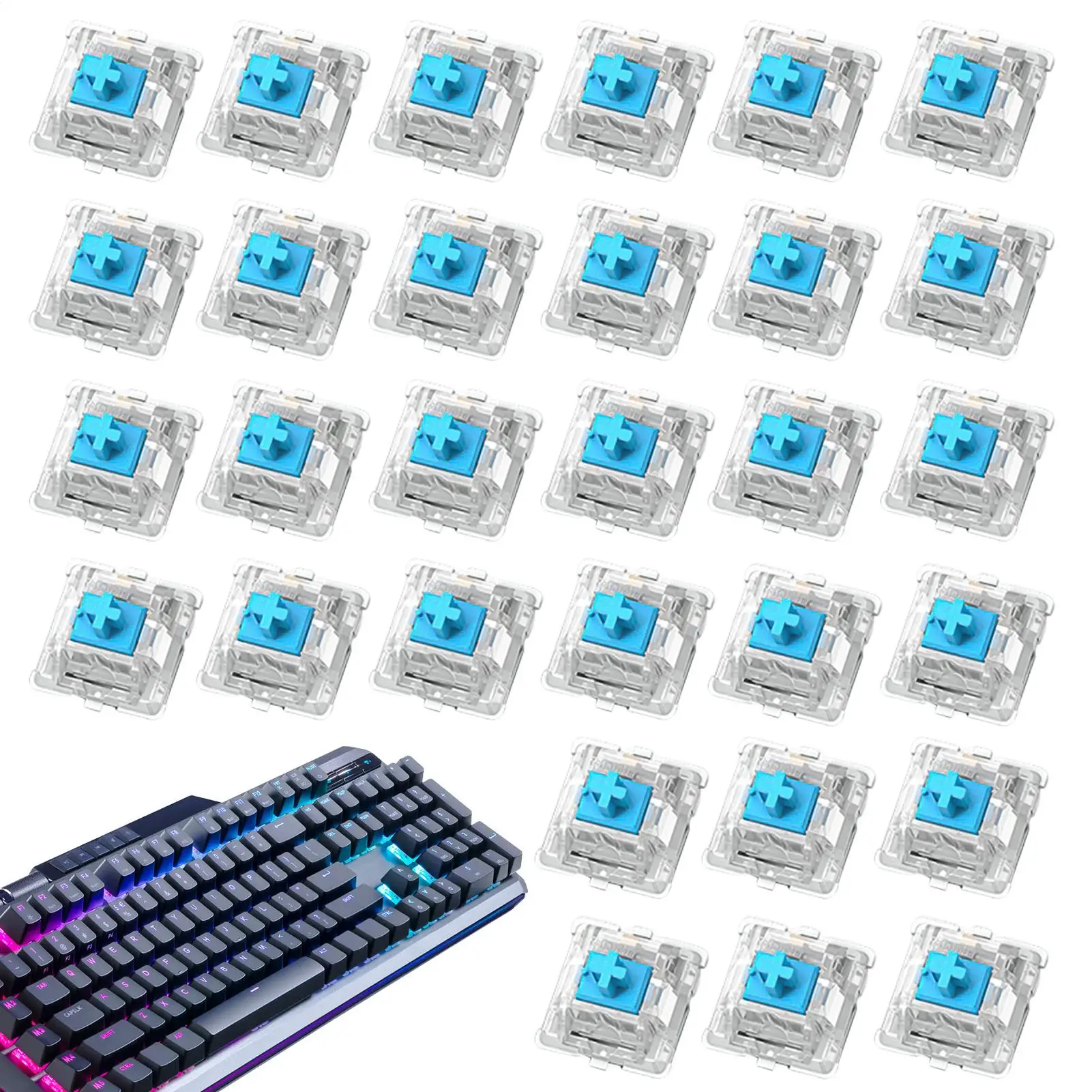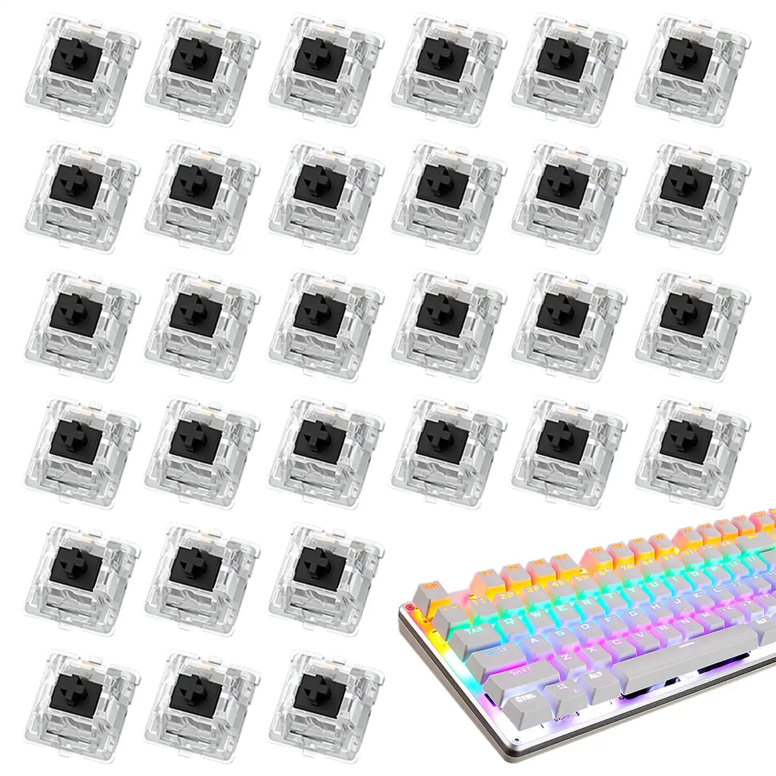 30 Uds interruptor para teclado 3pin interruptores silenciosos táctiles lineales Clicky para teclados mecánicos interruptor de juegos de varios colores