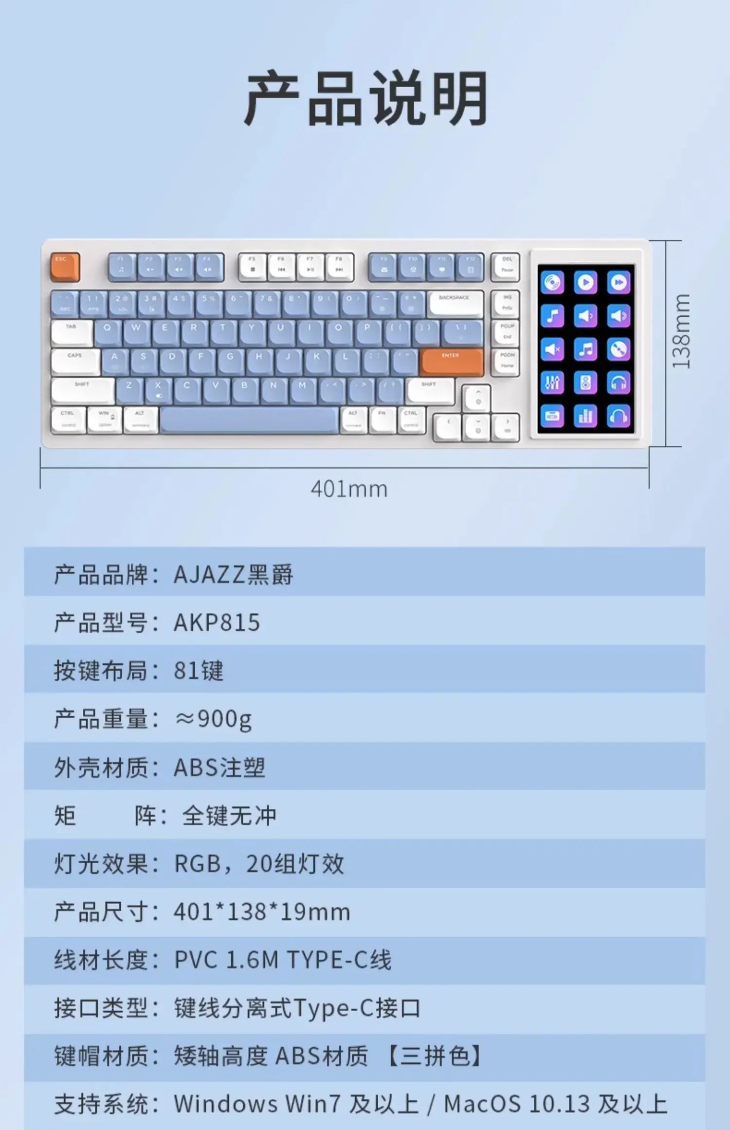 Key cap material: ABS material with low shaft height [three color block]