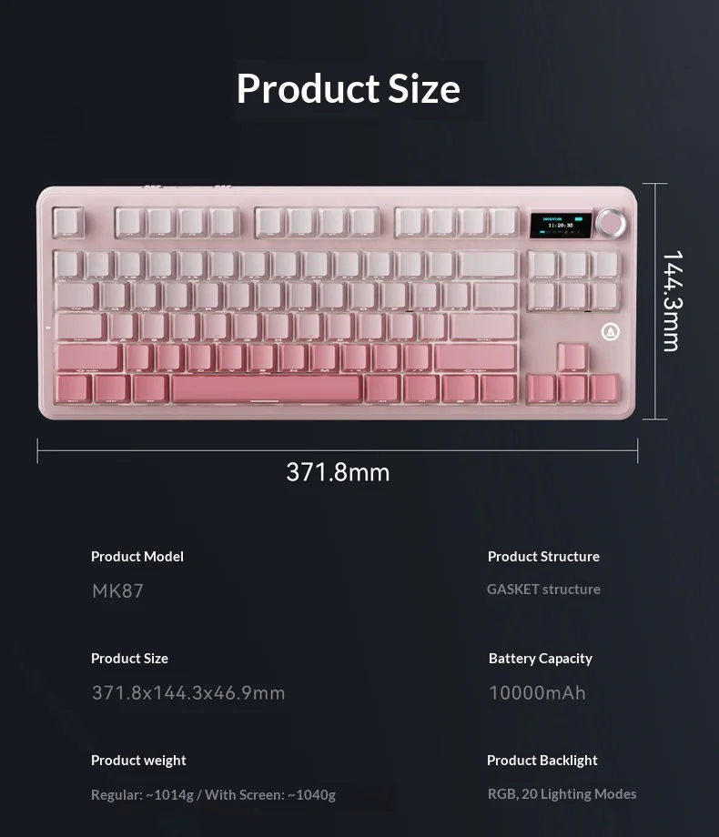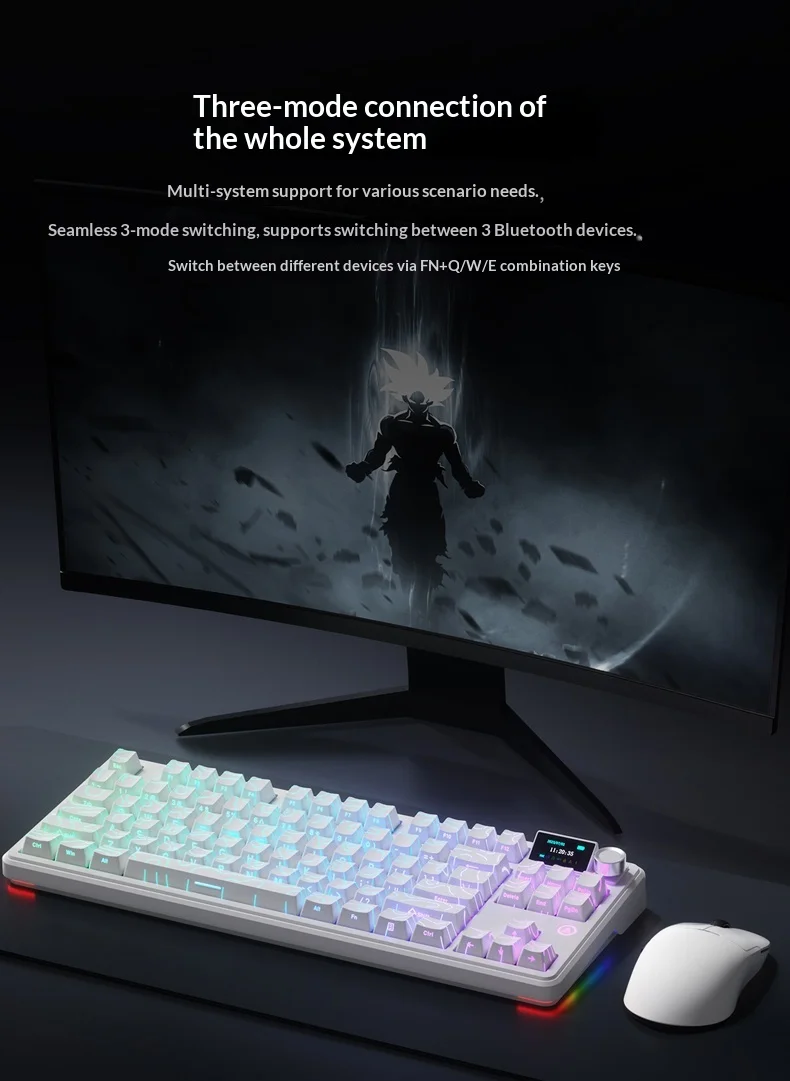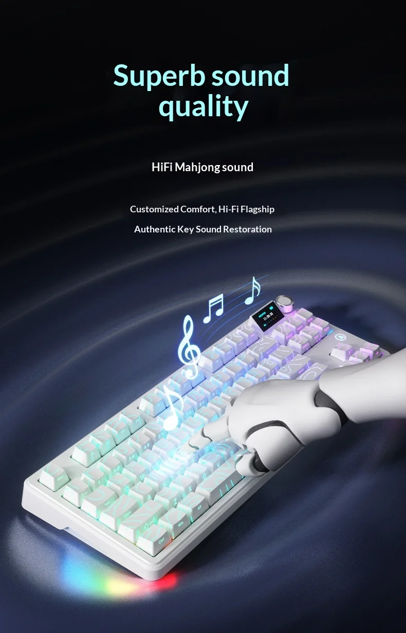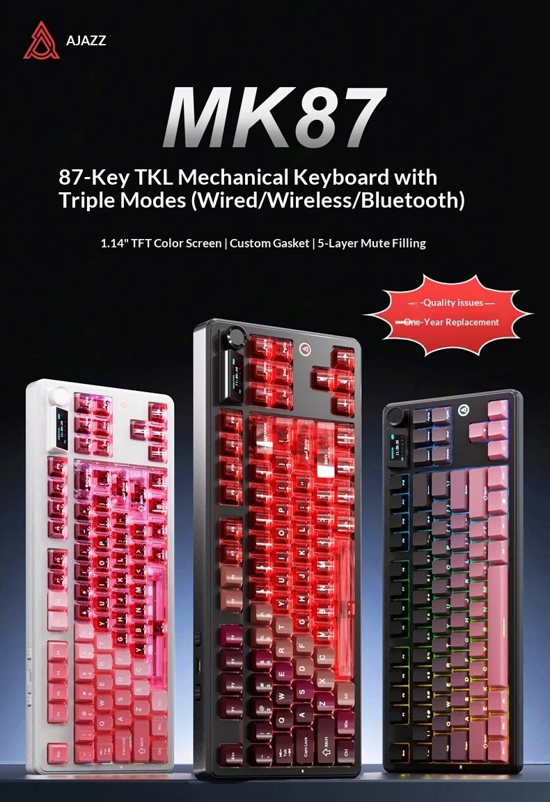 Teclado mecánico AJAZZ MK87 Prism Edition, teclado inalámbrico Bluetooth ergonómico RGB para juegos, 10000mAh con pantalla TFT de 1,14"