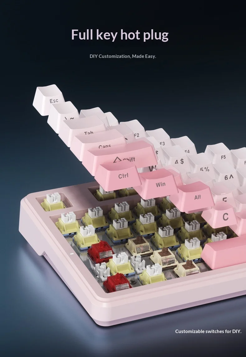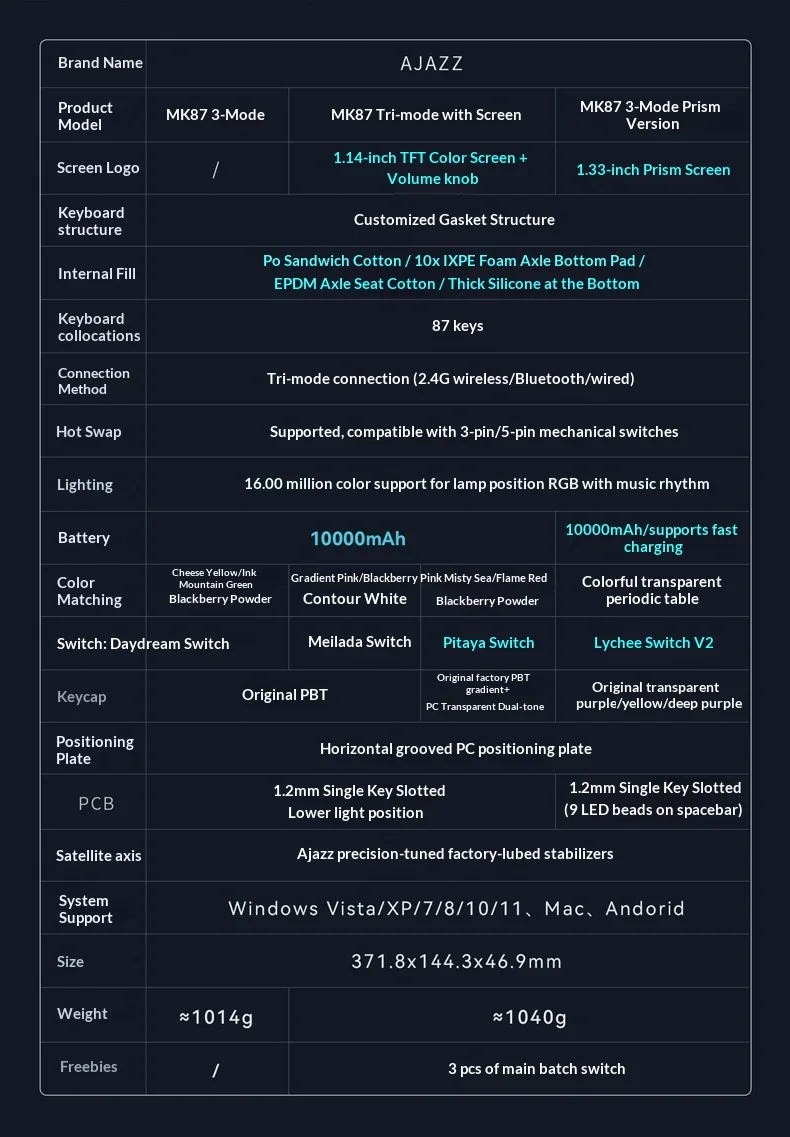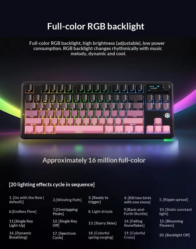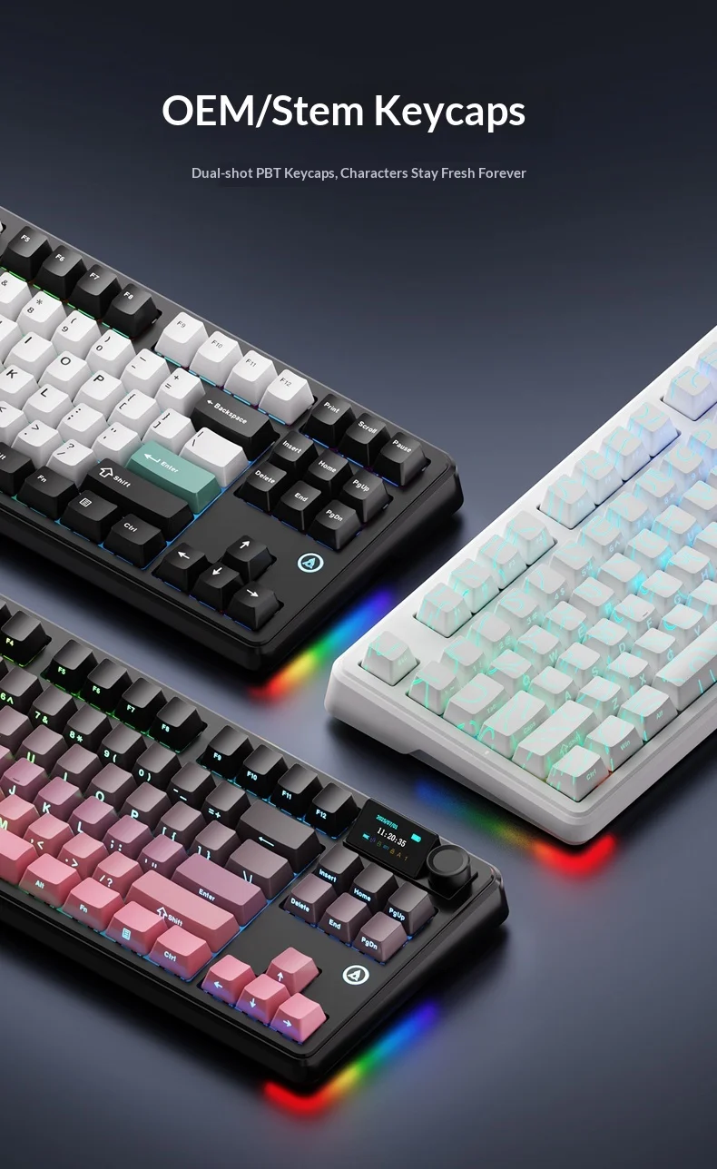 Teclado mecánico AJAZZ MK87 Prism Edition, teclado inalámbrico Bluetooth ergonómico RGB para juegos, 10000mAh con pantalla TFT de 1,14"