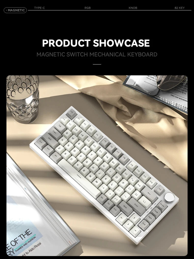 1.Eje magnético: se puede personalizar la carrera clave, soporte para macros personalizados, combos de liberación con una sola tecla