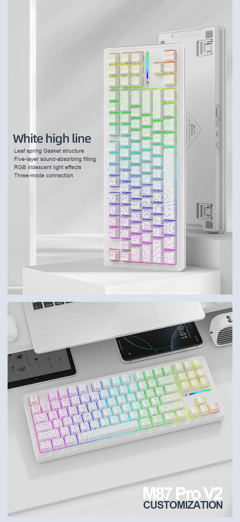 Teclado mecánico Attack Shark M87 Pro V2, Bluetooth, inalámbrico, modo Tri, retroiluminación RGB, GASKET, teclado para juegos, regalo