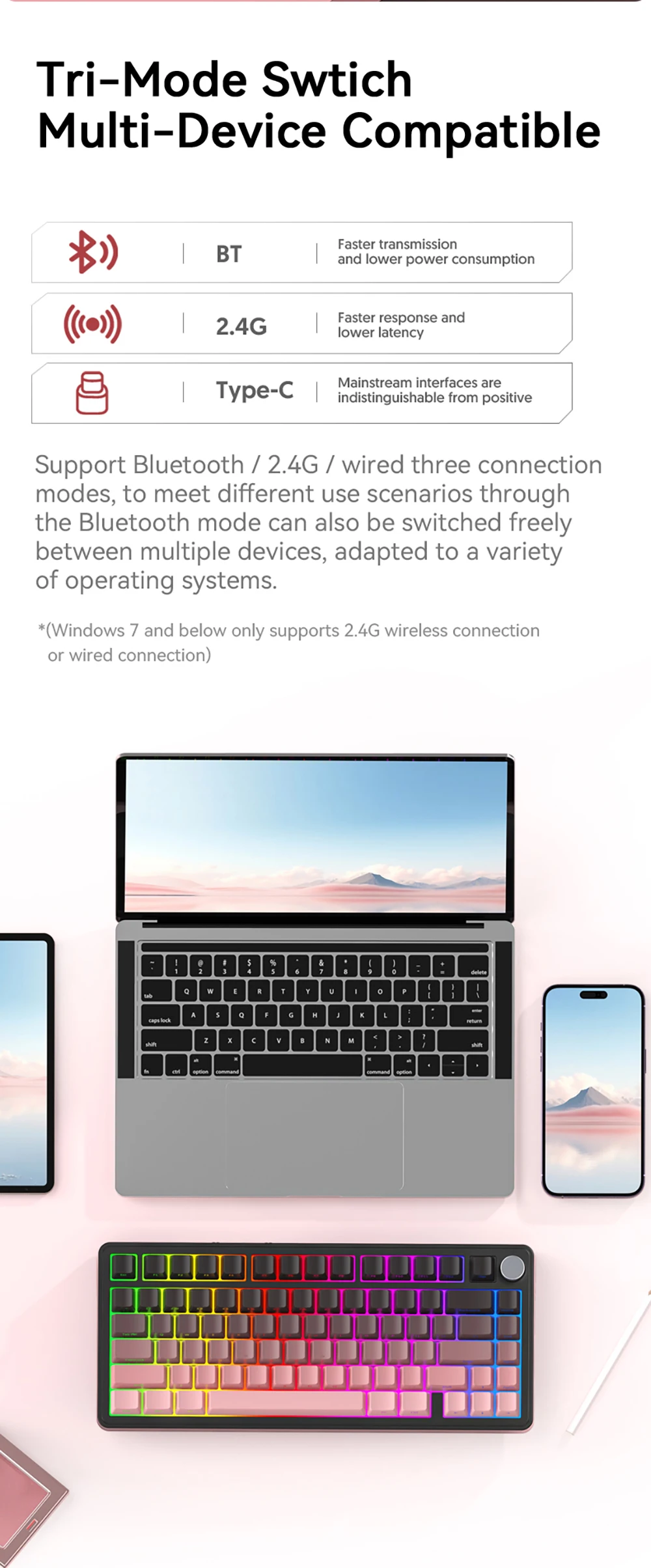 Conexión multimodo: TYPE-C con cable / 2.4G inalámbrico / Bluetooth 5.0