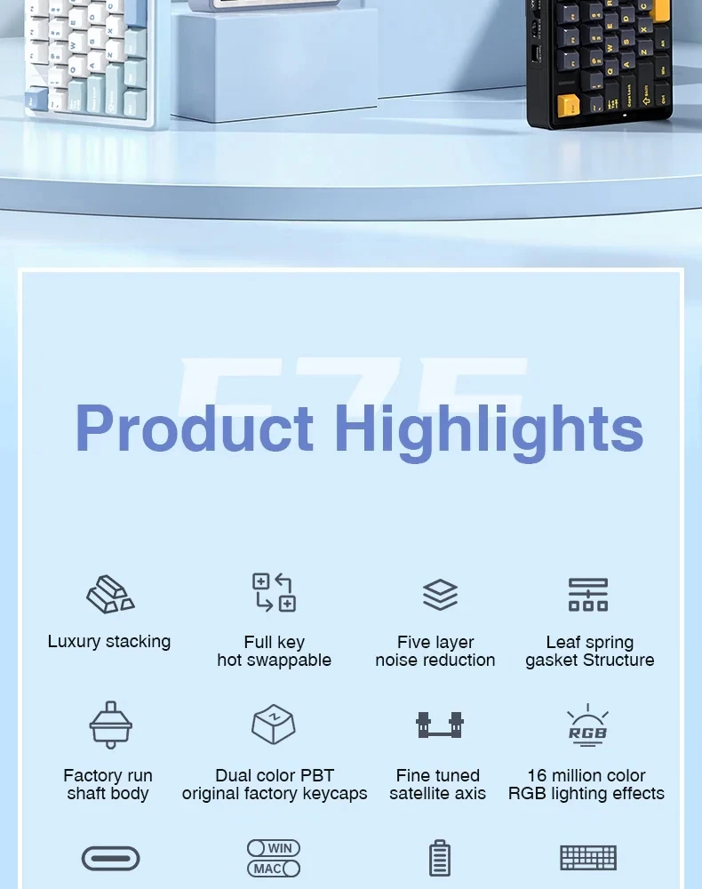 Teclado mecánico AULA F75 2,4G, inalámbrico/Bluetooth/teclado mecánico para juegos por cable, puede cambiar libremente entre modos de juego/oficina