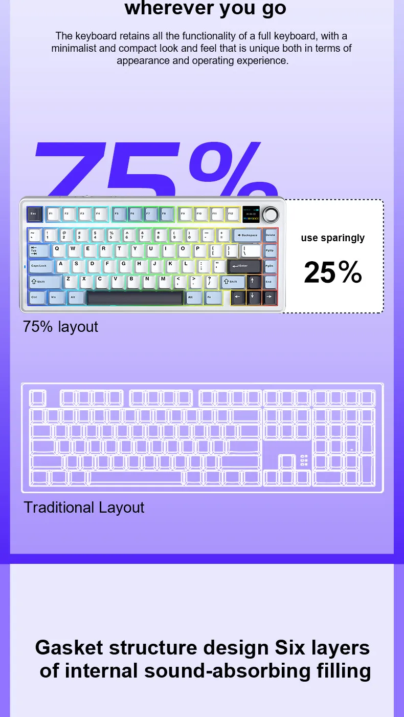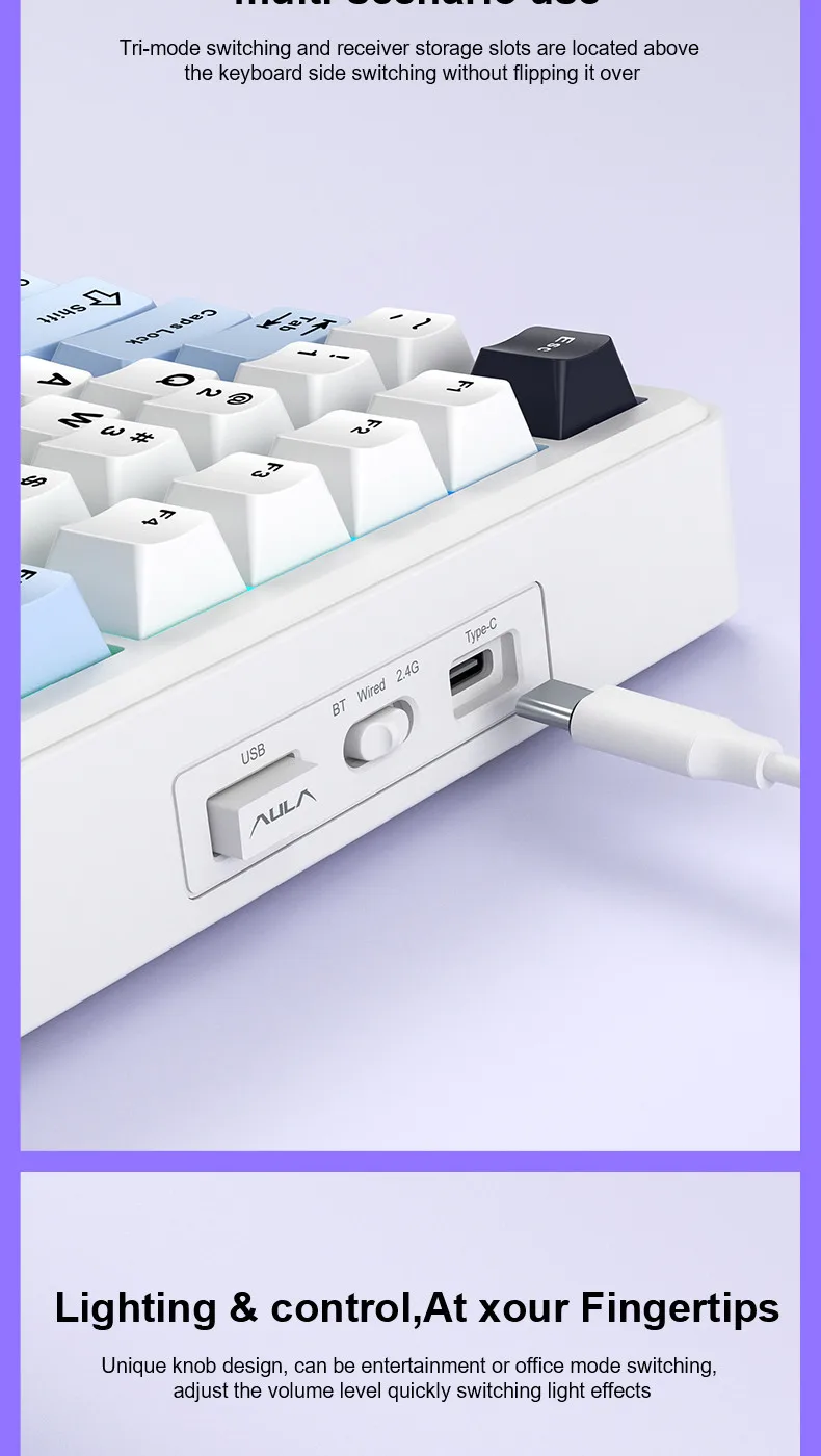 Comprar Teclado mecánico AULA F75 MAX 75% RGB, teclado deportivo electrónico de tres modos intercambiable en caliente con pantalla TFT para Win/Mac