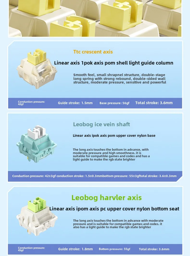- Teclas PBT: resistentes al desgaste y al aceite, manteniendo un tacto delicado durante mucho tiempo