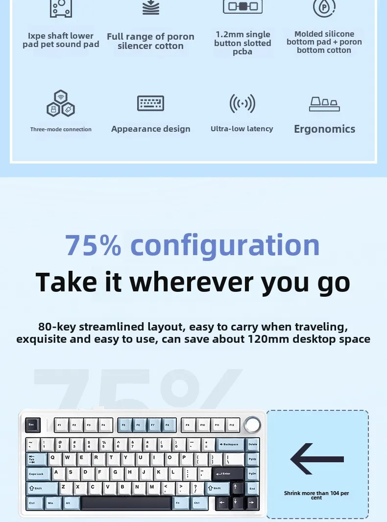 Teclado mecánico inalámbrico de tres modos Tarantula F75