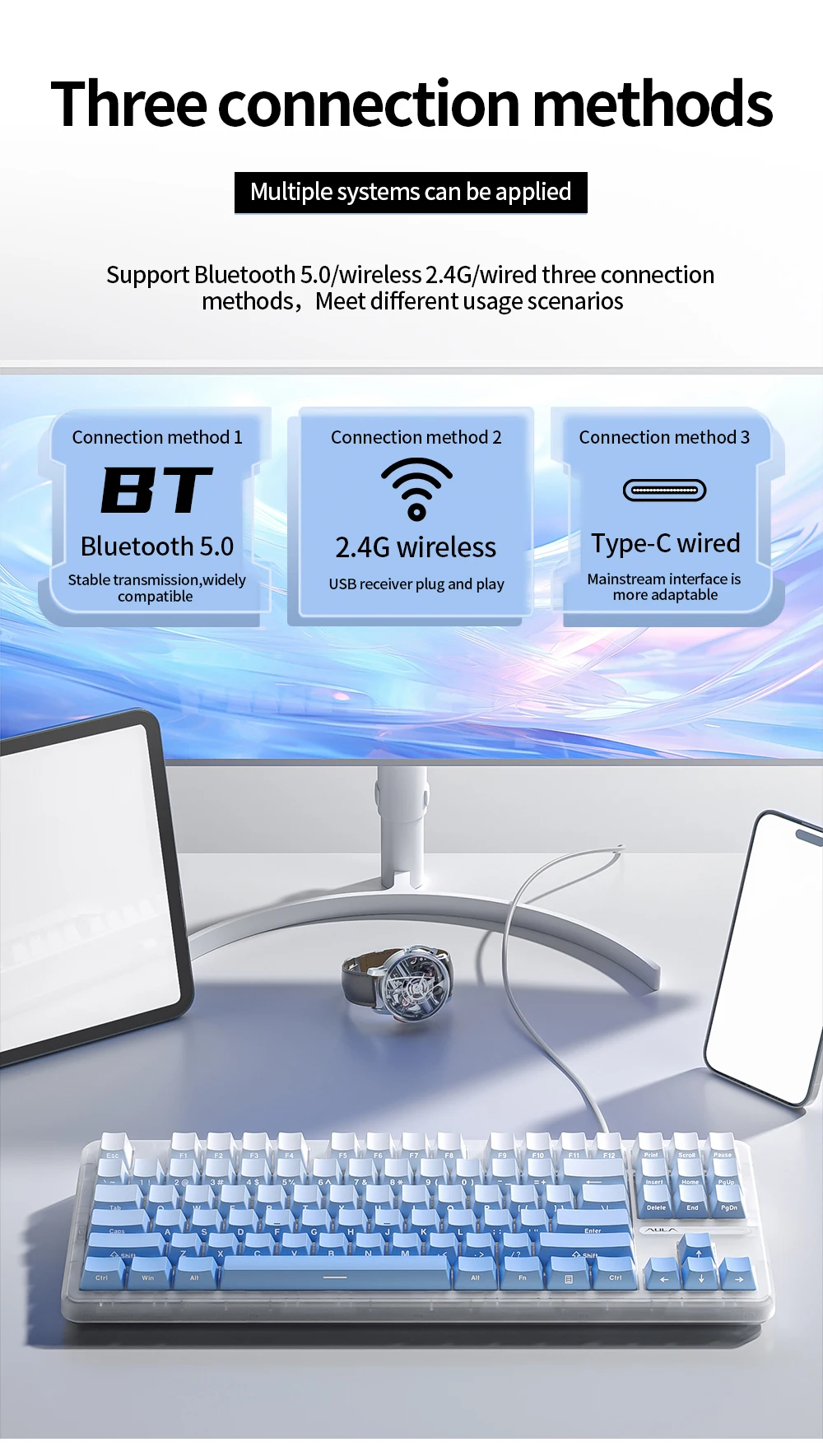 Teclado mecánico AULA L87, 2,4g/Usb/Bluetooth, modo Tri, inalámbrico, 87 teclas, junta Pbt Rgb, silenciador de 5 capas, tecla completa sin impacto