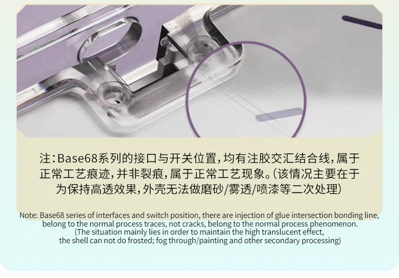 Note: Base68 series of interfaces and switch position, there are injection of glue intersection bonding line, belong to the normal process traces, not cracks, belong to the normal process phenomenon.