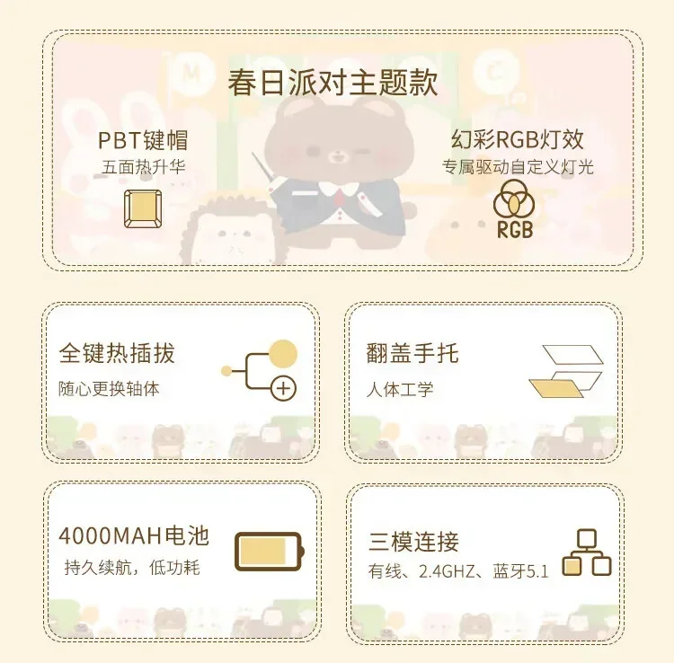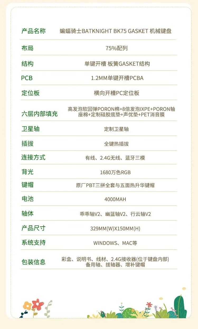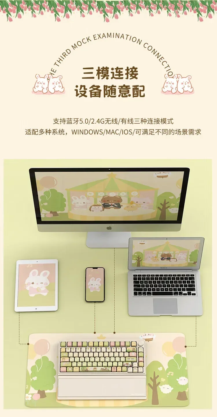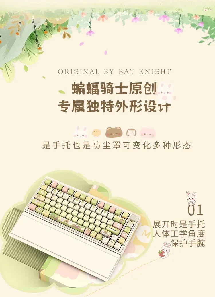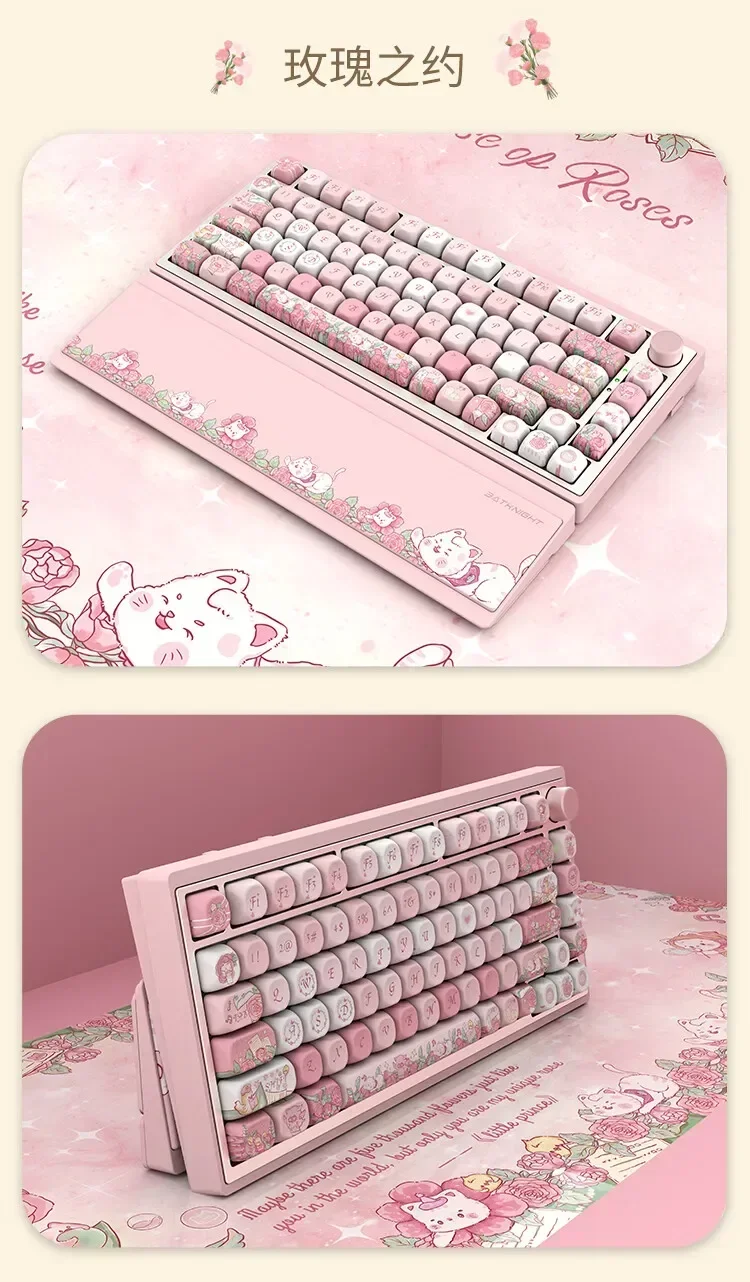Teclado mecánico Batknight BK75 The Covenant of The Rose, modo Tri, reposamanos intercambiable en caliente, teclado para juegos, accesorios para juegos