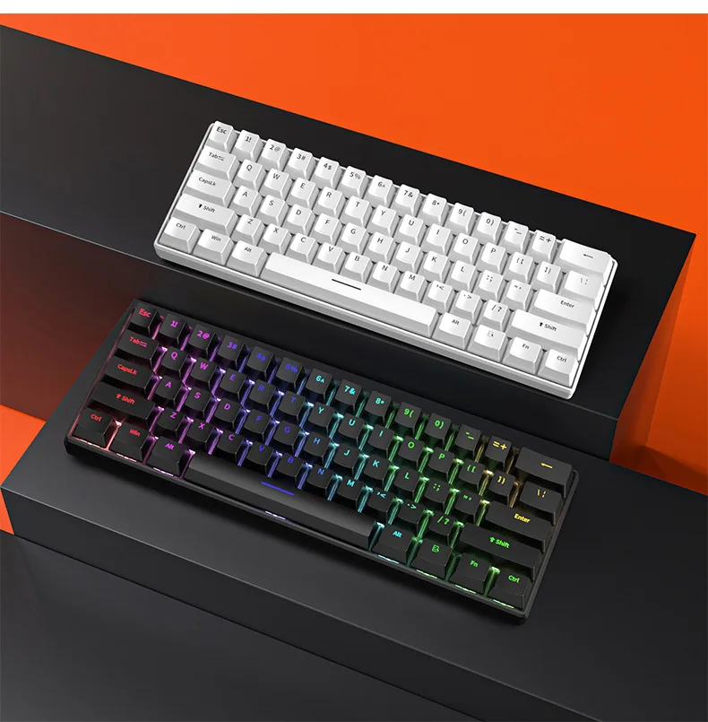 Teclado mecánico blanco para juegos, dispositivo USB 60%, mini teclado español, teclado para pc, ordenador portátil