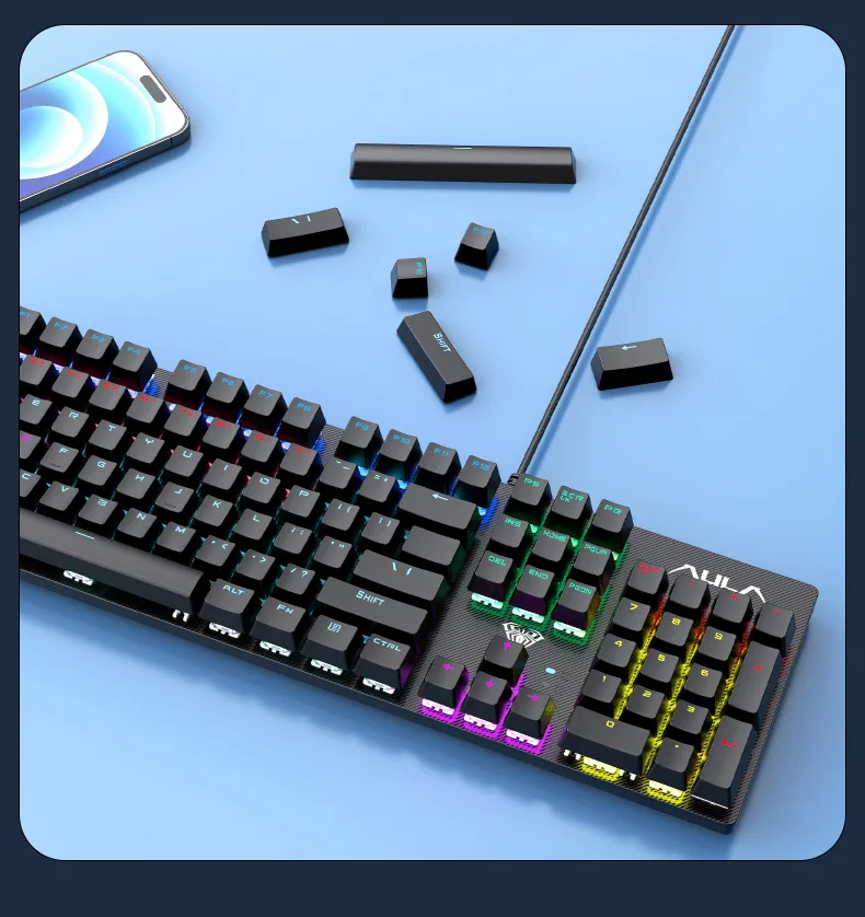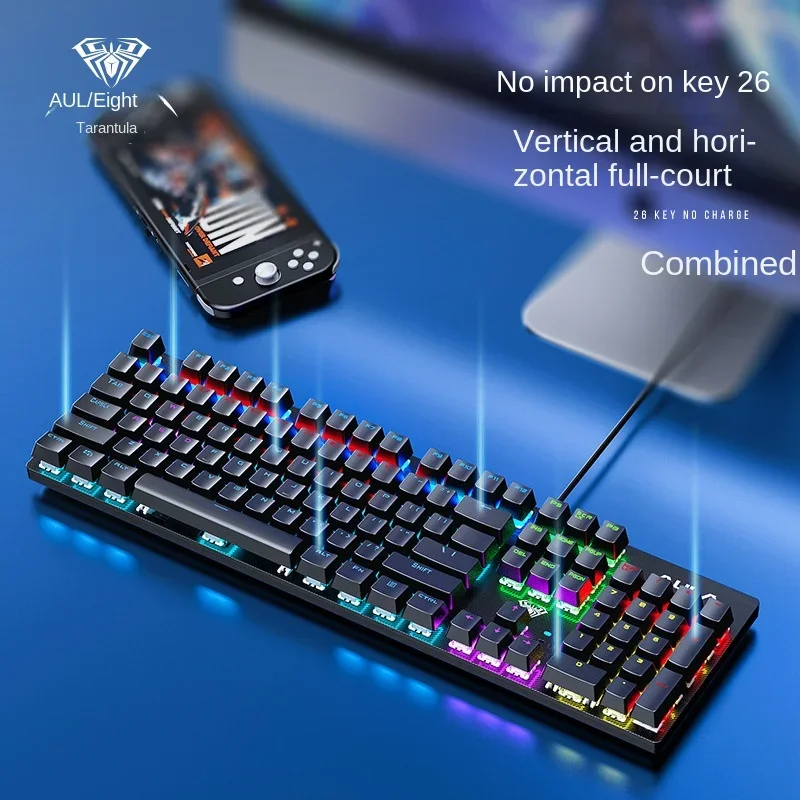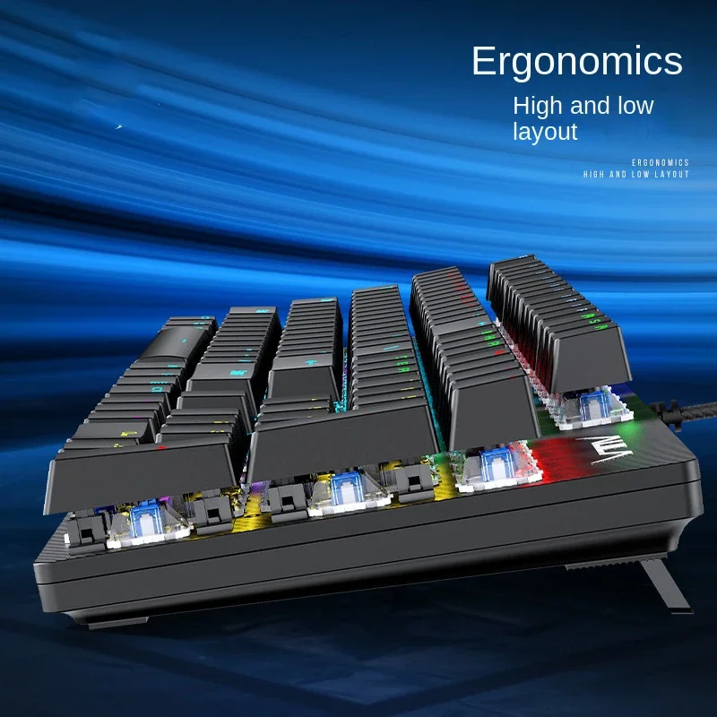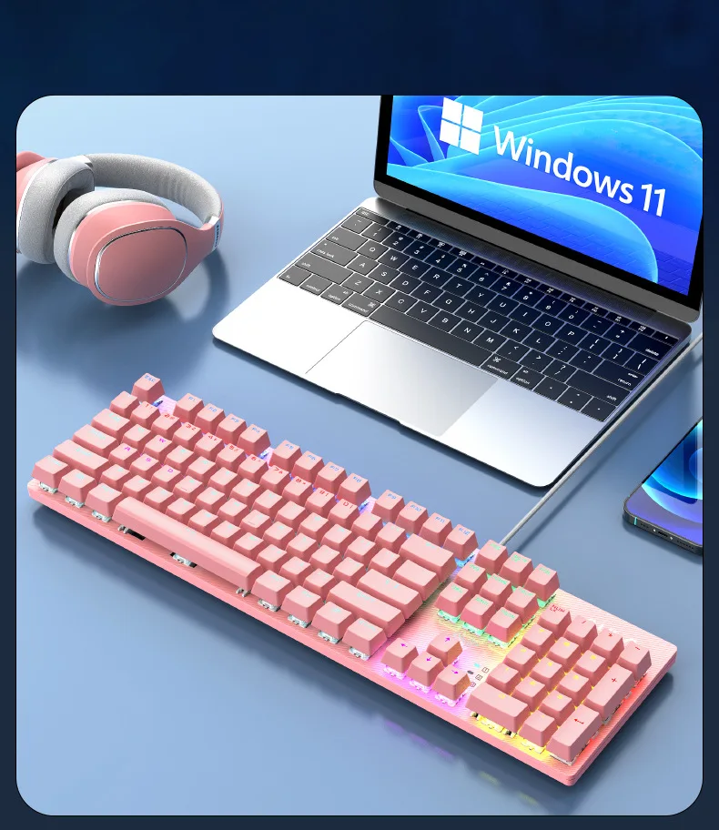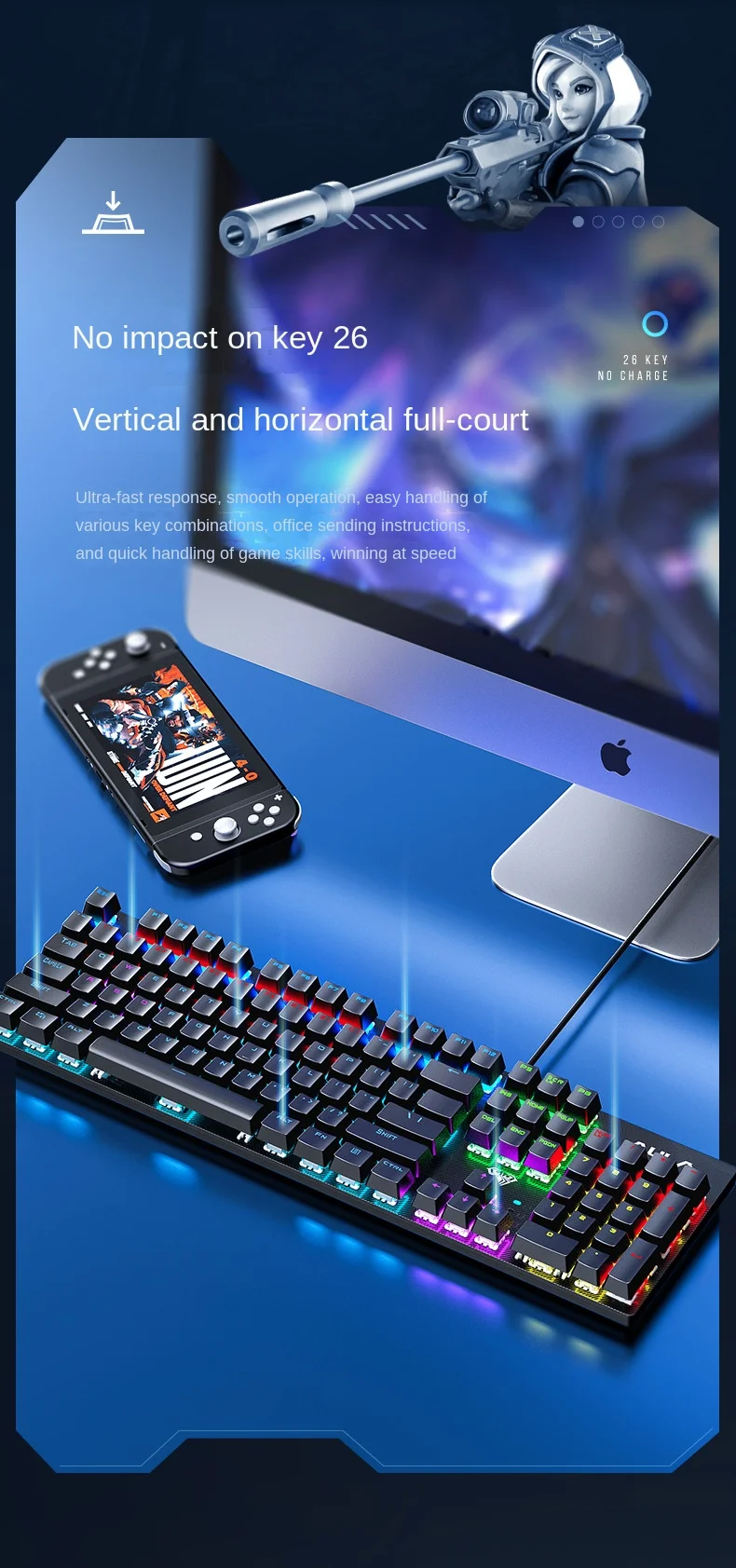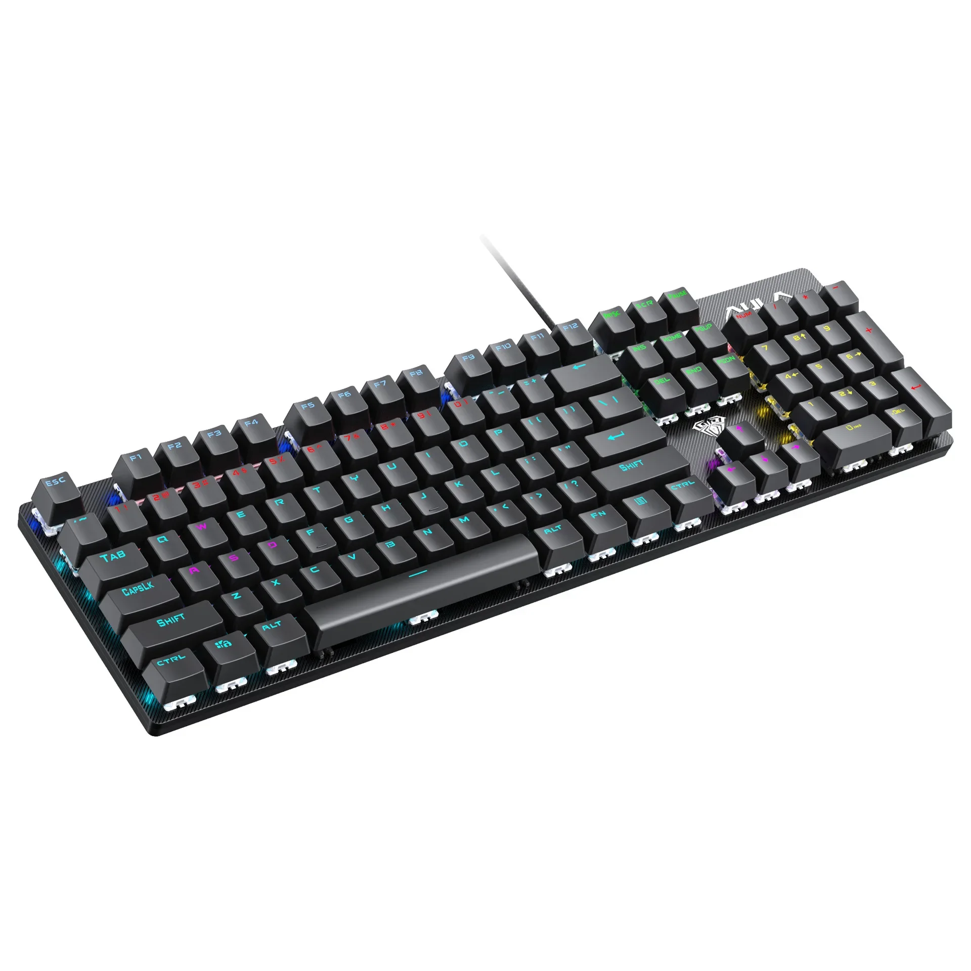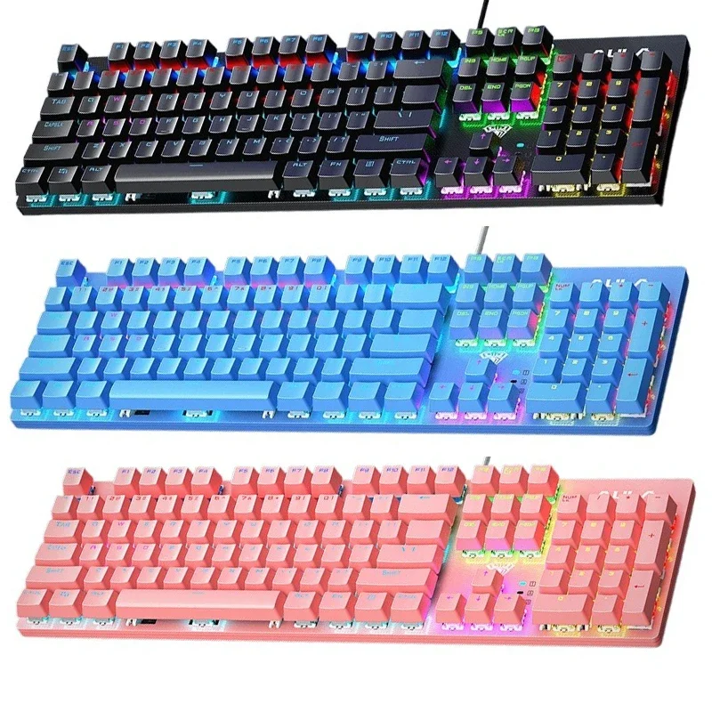 Comprar Teclado mecánico con cable para Gamer, teclados USB para juegos, retroiluminado, Musical, 100%, ordenador, 104 teclas, teclado ergonómico para Pc