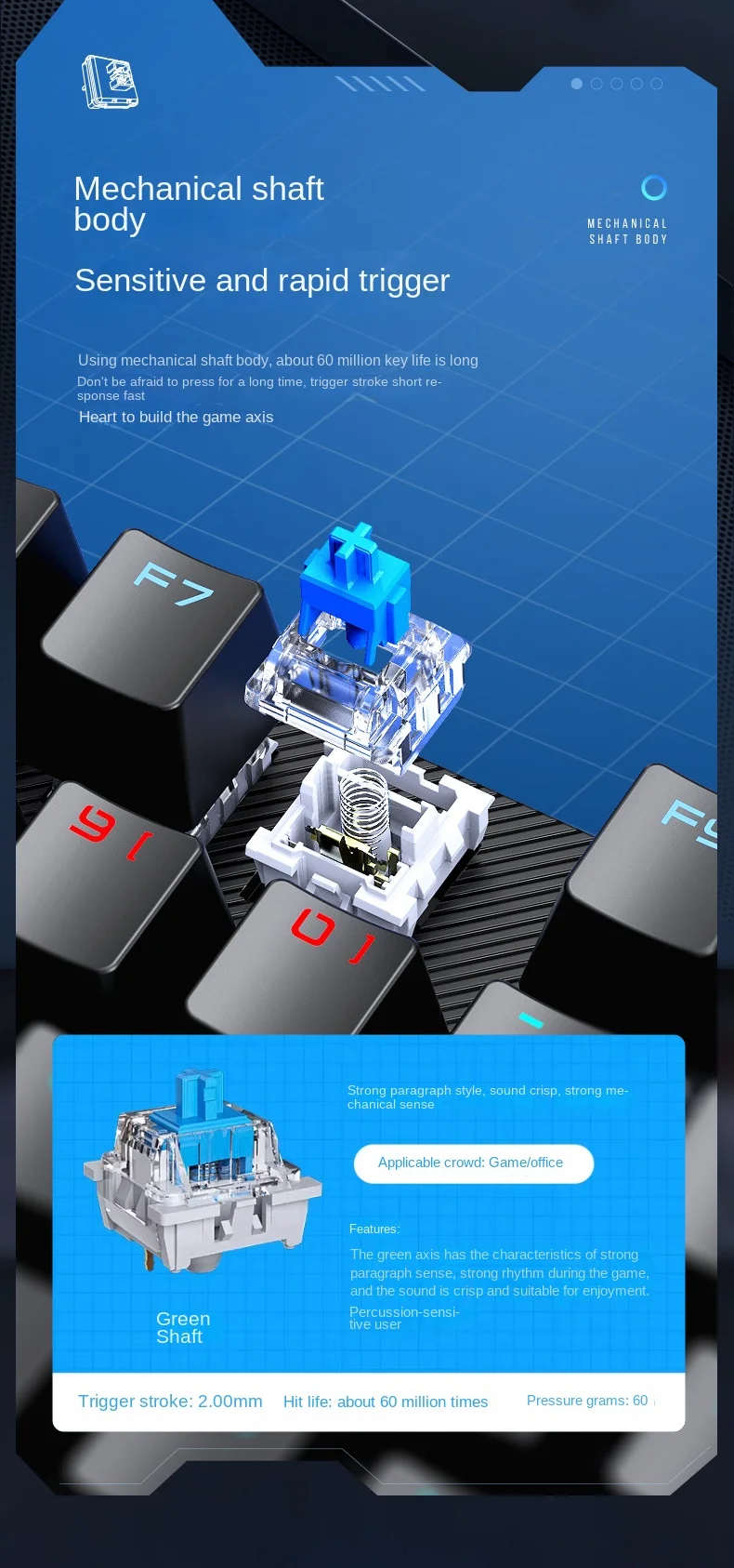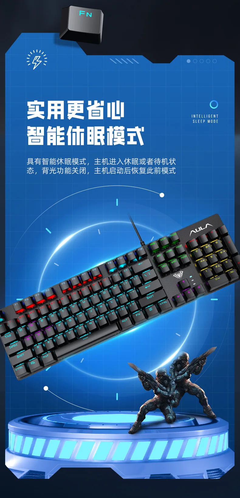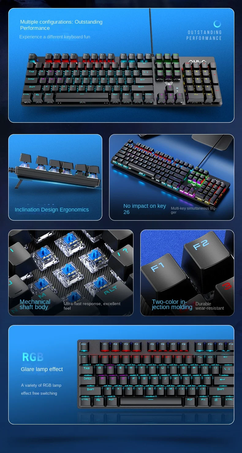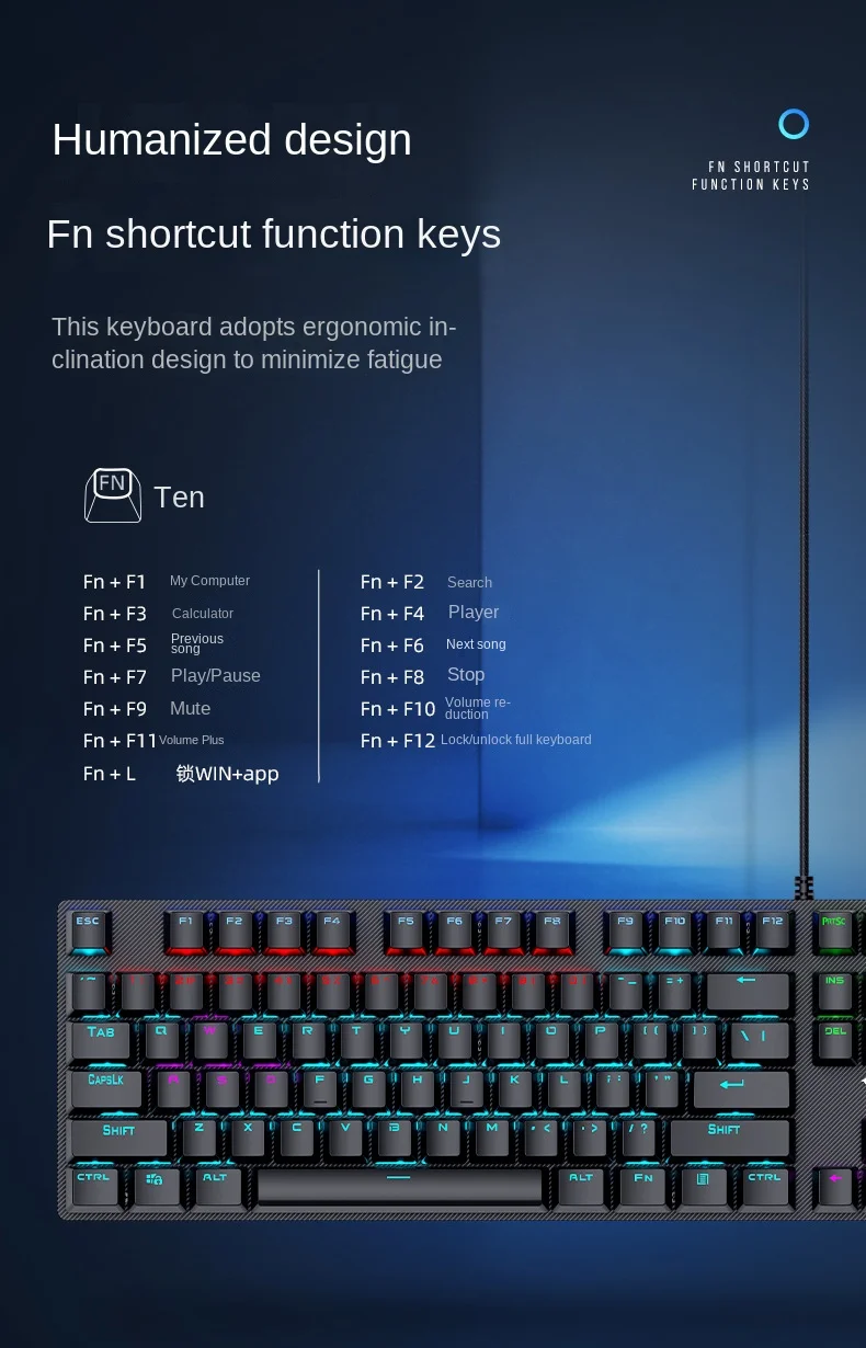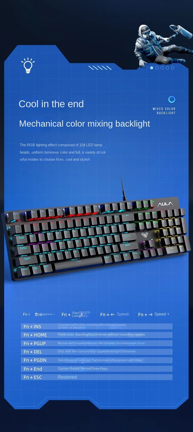 Comprar Teclado mecánico con cable para Gamer, teclados USB para juegos, retroiluminado, Musical, 100%, ordenador, 104 teclas, teclado ergonómico para Pc