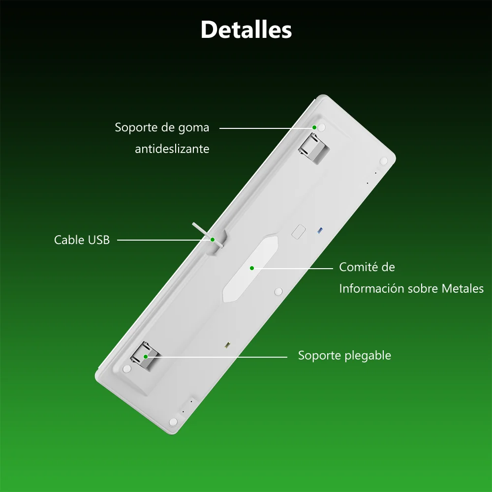 El fondo detras de las teclas es plateado y no blanco lo cual en las imagenes no se aprecia, no se que clase de switches falsos trae que son marrones y son lineales y no tactiles LOL.