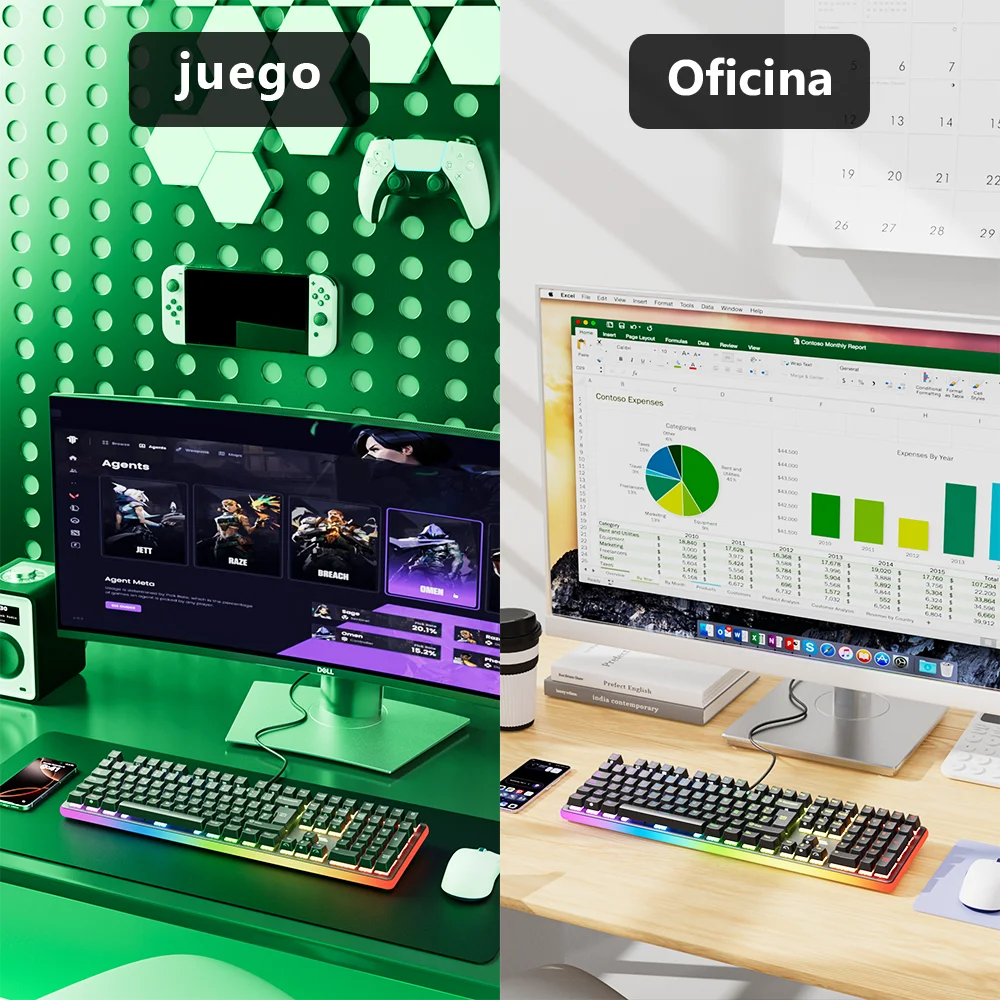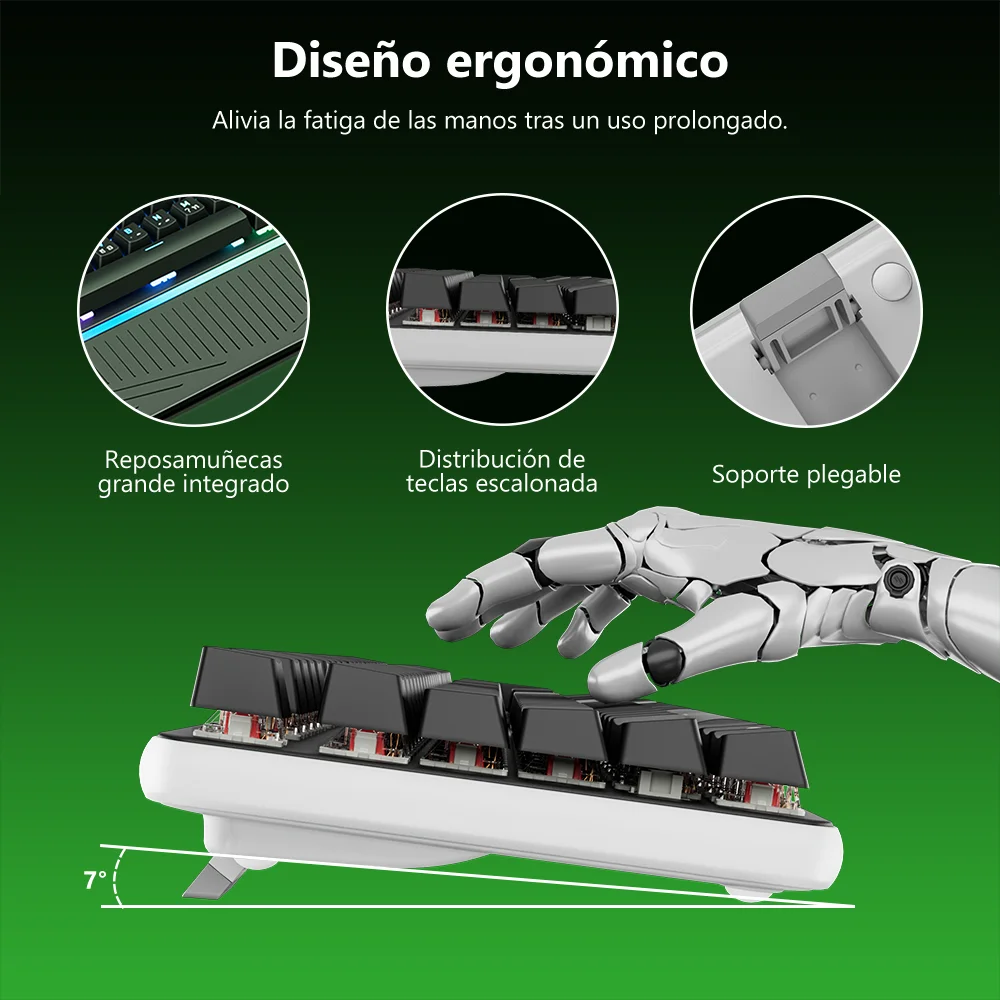 Diseño: 104 teclas 100% diseño de teclado