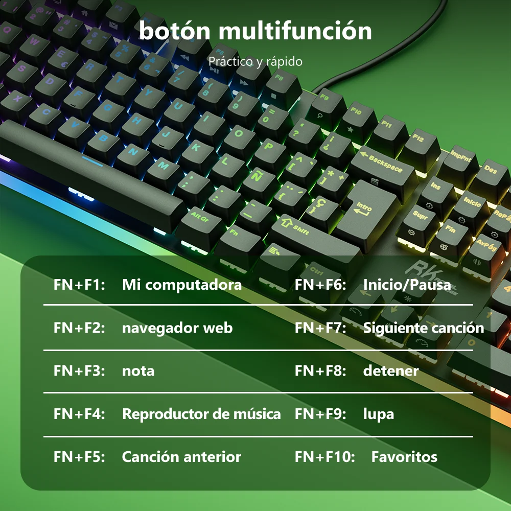 Teclado mecánico completo en español con reposa muñecas incluido. Iluminación RGB. No tiene nada que envidiar a teclados muchísimo más caros.