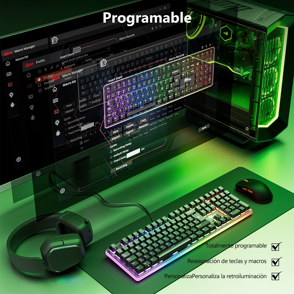 5.DIY programable: software DIY efecto de luz potente macros de juego Programable con teclas completas