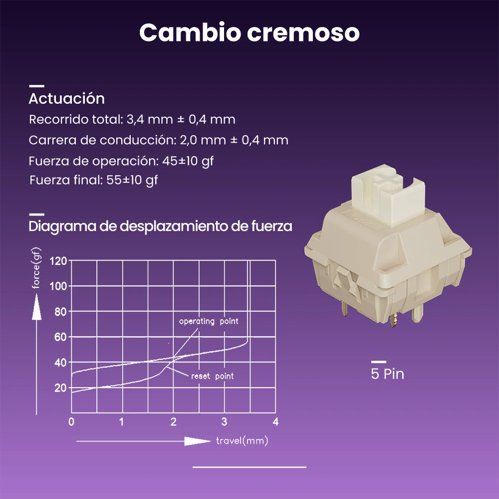 Equipado con interruptores mecánicos Cream y teclas ABS.